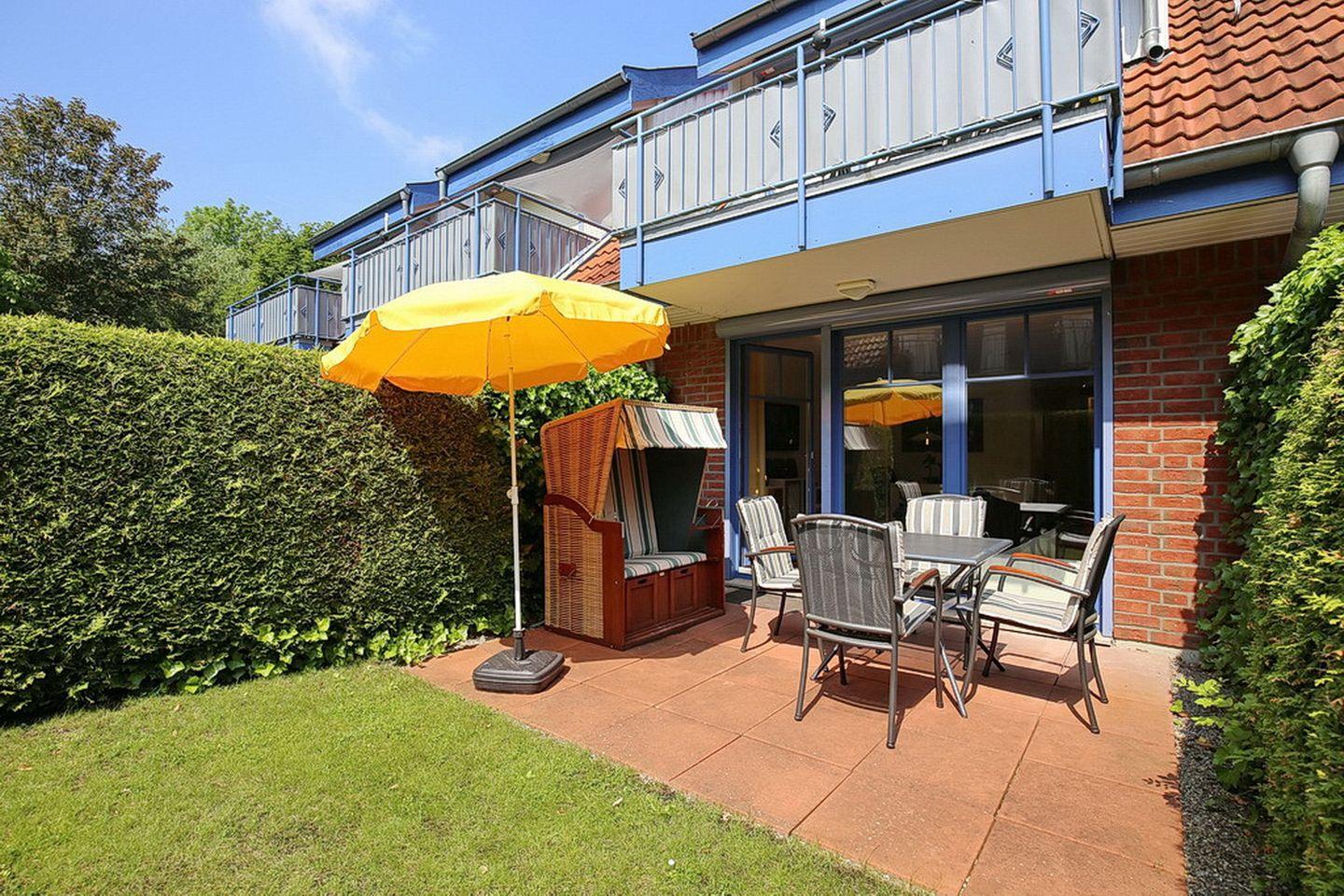 Die Ferienwohnung 04-2 in der Anlage Papillon ist eine schöne 2-Zimmer-Wohnung für bis zu 4 Personen. Die Ferienwohnung liegt im Erdgeschoss und hat eine Terrasse in Süd-West Lage. WLAN (ohne Gewähr) und ein Strandkorb sind inklusive.