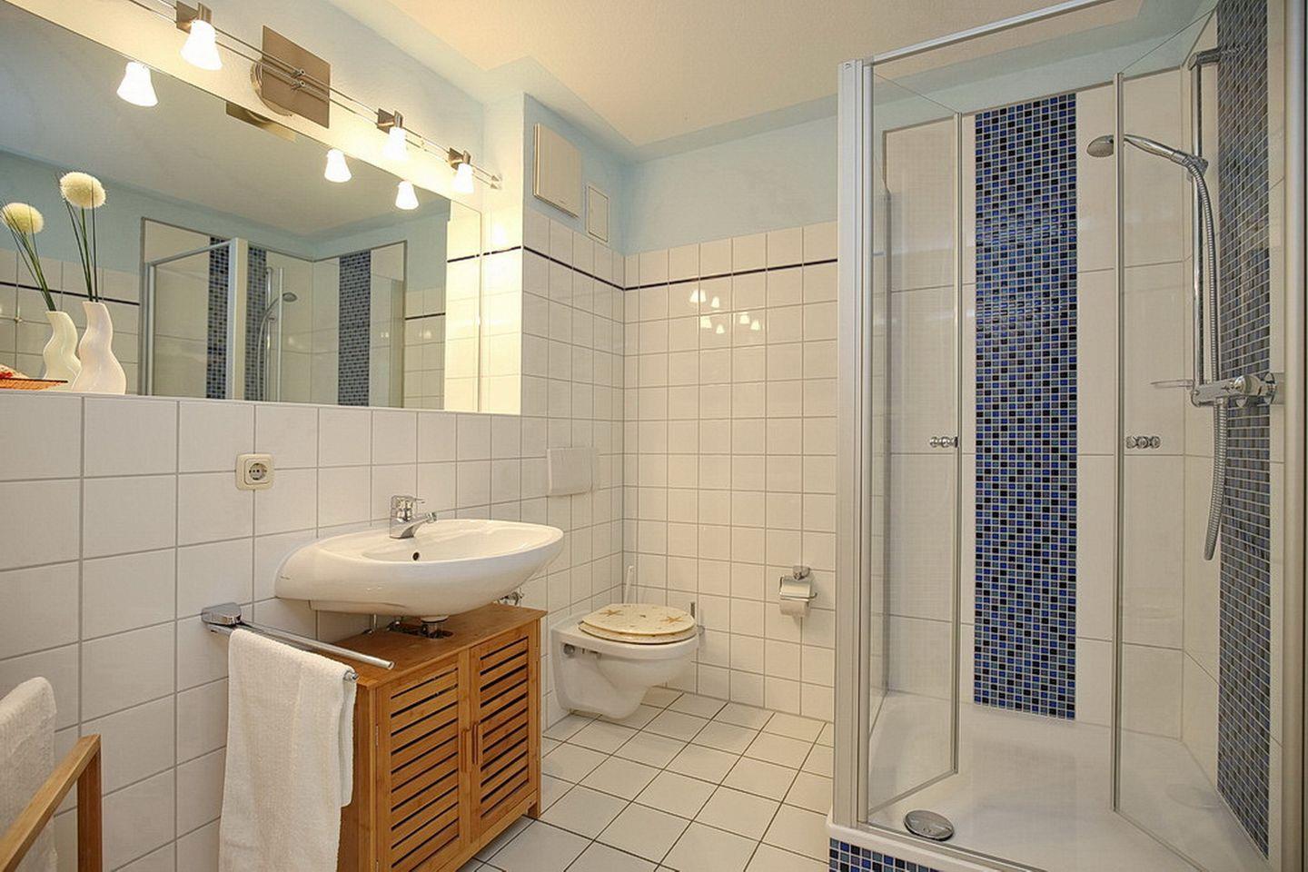 Das geflieste Duschbad ist freundlich gestaltet. Fahrräder können direkt vor dem Haus abgestellt werden. In dieser Nichtraucherwohnung sind Haustiere nicht gestattet.