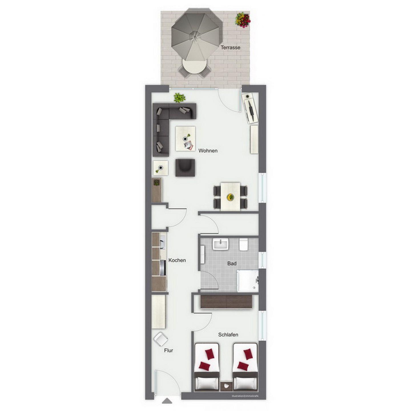 Wohnfläche 55 m²