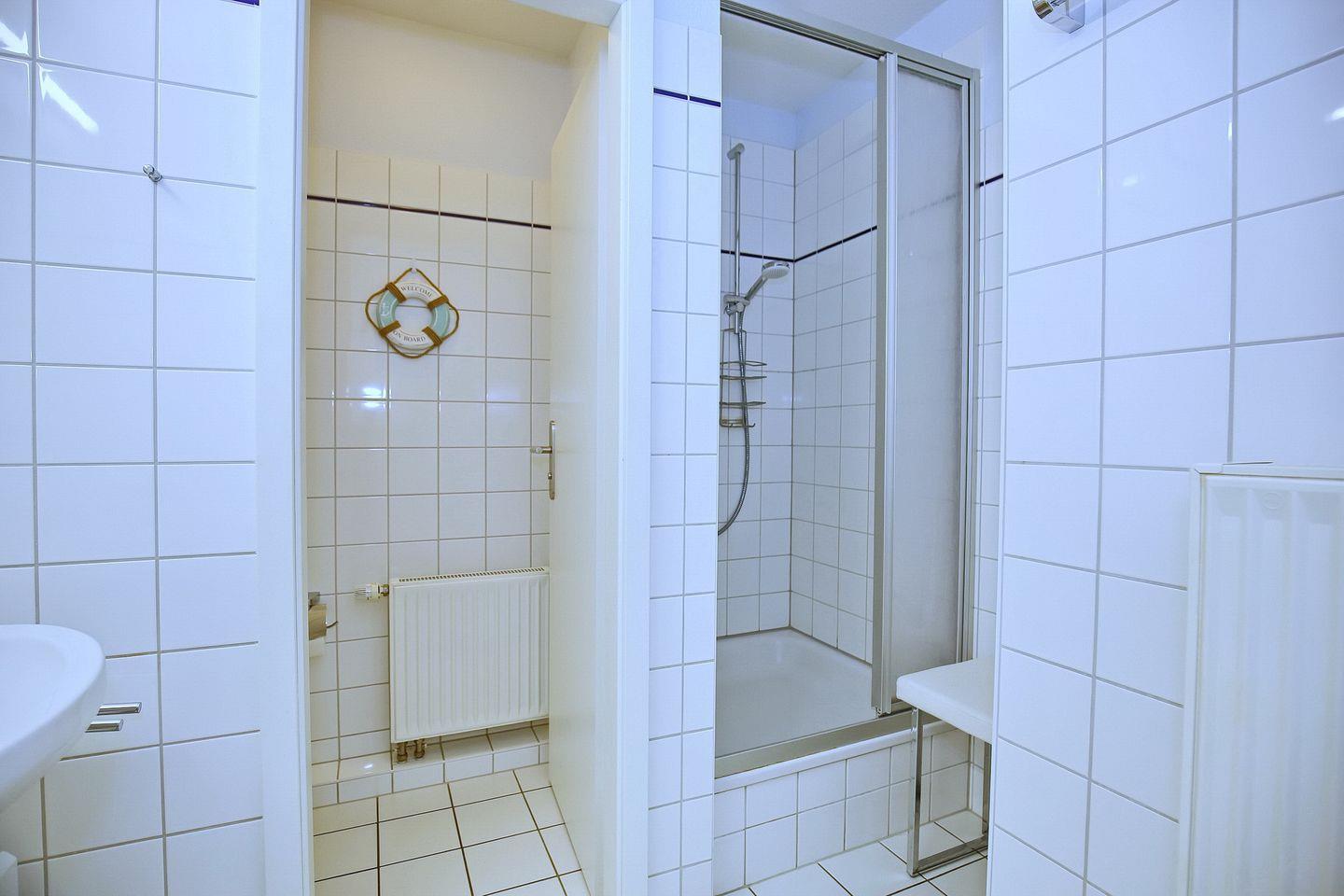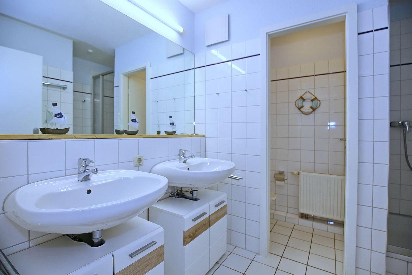 In dem gefliesten Duschbad mit zwei Waschbecken gibt es ein separates WC. Fahrräder können im Fahrradkeller des Hauses sicher abgestellt werden. In dieser Nichtraucherwohnung sind maximal zwei Haustiere erlaubt.
