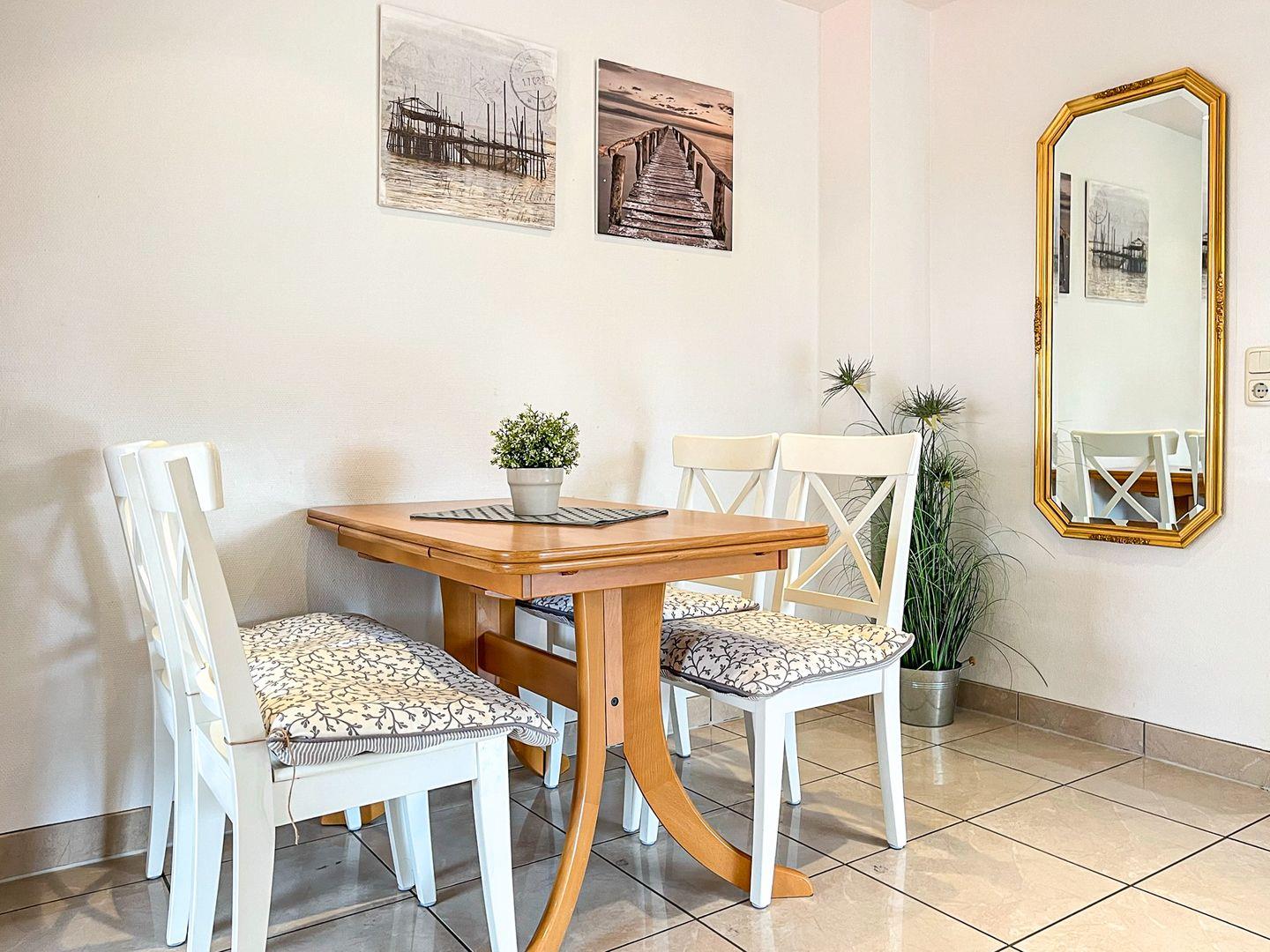 Moderne 3-Zimmer-Ferienwohnung in Boltenhagen, nur 100 Meter vom Strand entfernt mit Balkon und WLAN.