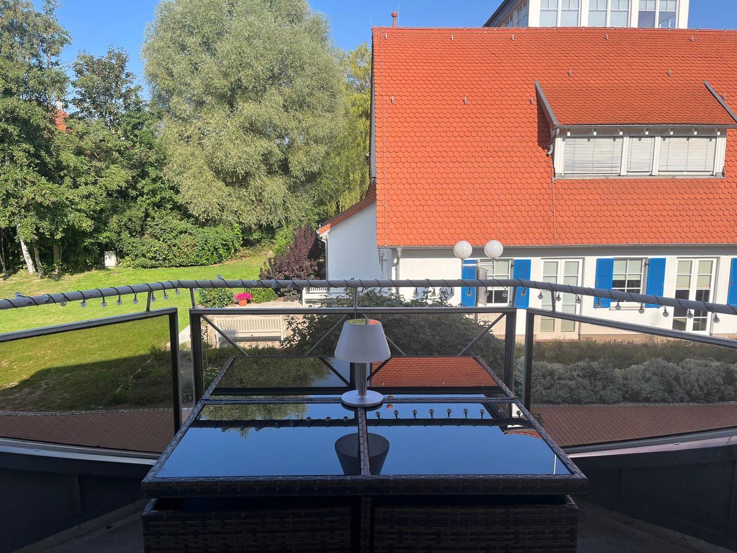 Freundlich, geräumig und hell ist das mit Laminat ausgelegte Wohnzimmer der Ferienwohnung. Hier erwartet dich ein Sofa mit Schlaffunktion (160 x 200 cm). Ein Flachbild-TV und eine Stereoanlage stehen dir selbstverständlich zur Verfügung. Vom Wohnzimmer geht es auf den Balkon, der westlich ausgerichtet ist und auf dem du die Nachmittagssonne genießen kannst.
