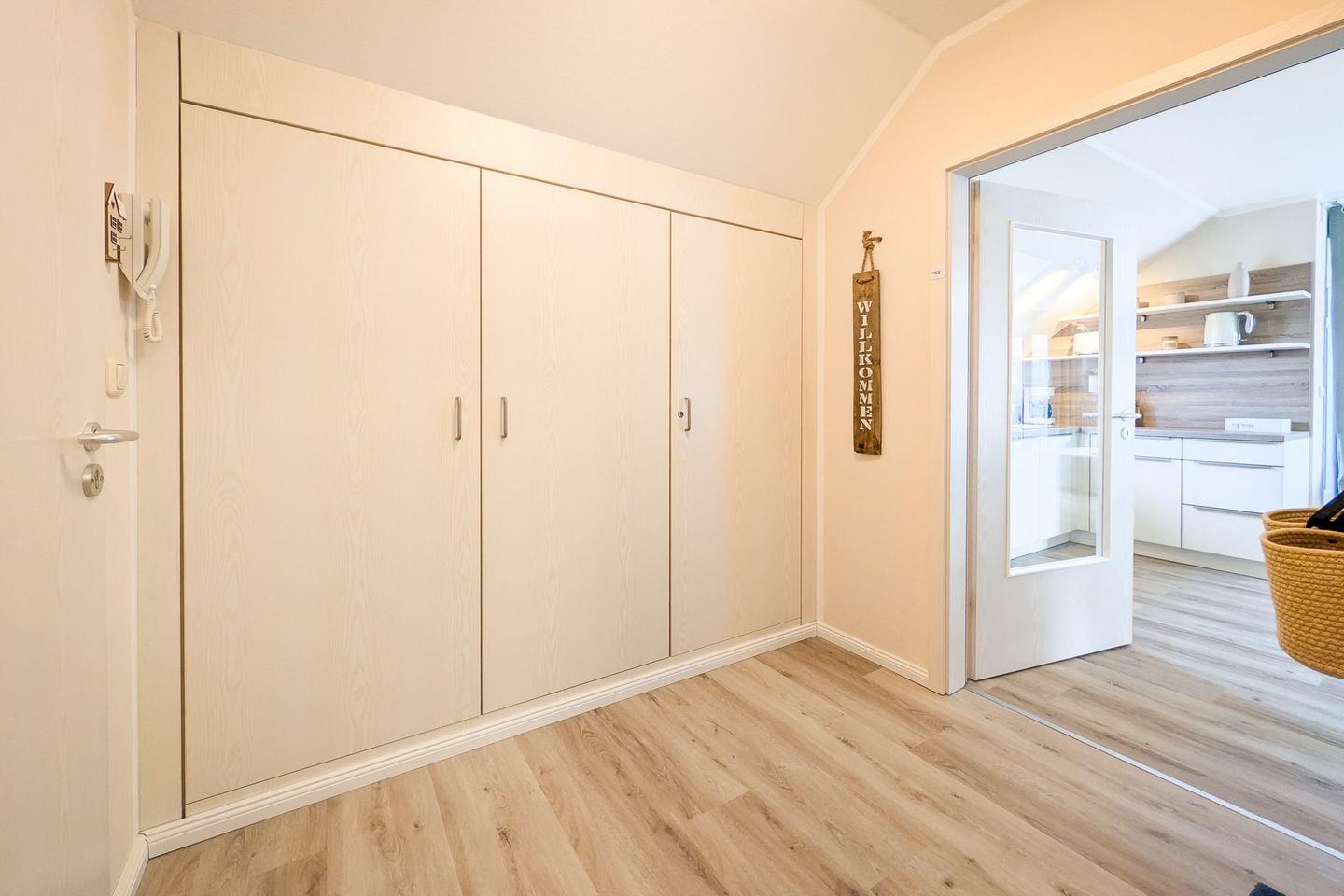 Diese im modernen Stil eingerichtete und exklusive Ferienwohnung liegt im DG und verfügt auf ca. 54 m² über ein Wohnzimmer mit Küchenzeile, ein Schlafzimmer, ein Duschbad und zwei Balkone. Zum Strand sind es nur ca. 100 m.