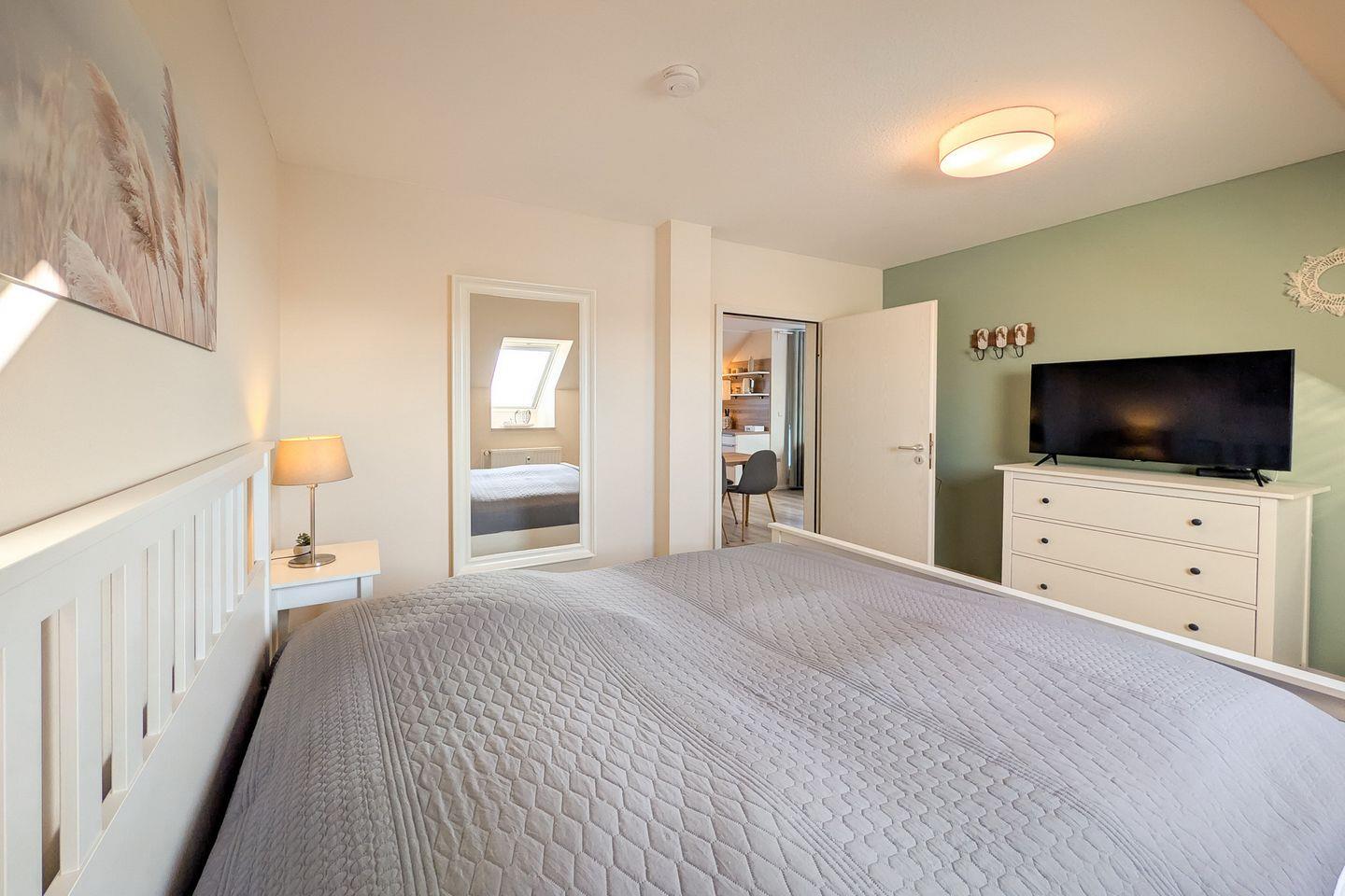 Optimalen Schlafkomfort bietet das große Doppelbett (2 x 90 x 200 cm) im Schlafzimmer. Viel Platz für deine Urlaubsgarderobe bietet der Kleiderschrank. Auch ein zweiter Flachbildfernseher befindet sich hier. Die gesamte Wohnung ist mit hochwertigem Designbodenbelag ausgelegt.
