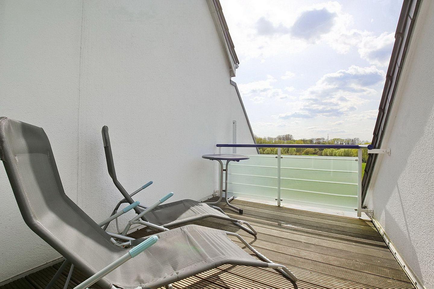 Bei Bedarf findet eine weitere Person auf der Schlafcouch einen Schlafplatz. Optimalen Erholungsfaktor bieten die zwei Balkone. Vom Südbalkon erwartet dich ein herrlicher Blick über die bis an die Anlage reichenden Haffwiesen, der andere Balkon ist zur Seeseite ausgerichtet.