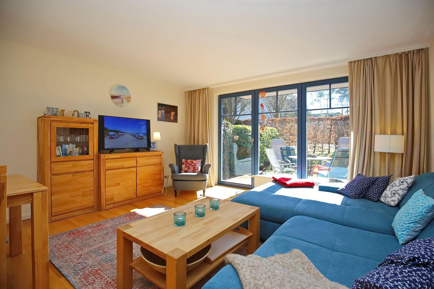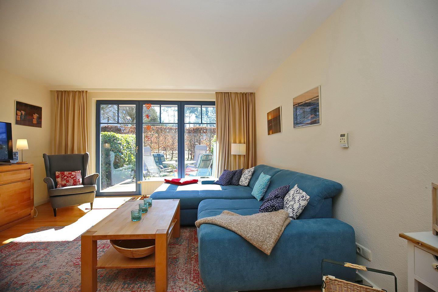 Die gemütliche Ferienwohnung Papillon 07-3 in Boltenhagen bietet eine sonnige Terrasse und Komfort nur 250 m vom Strand entfernt.