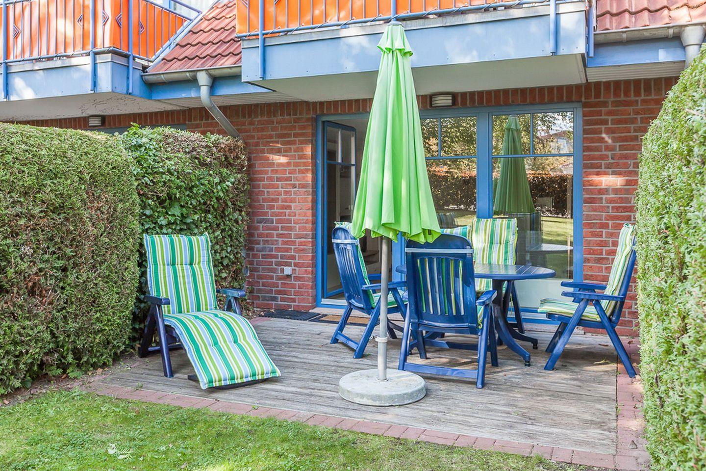 Die Ferienwohnung 15-2 in der Anlage Papillon ist eine schöne 2-Zimmer-Wohnung für bis zu 4 Personen. Die Wohnung liegt im Erdgeschoss und hat eine Terrasse in Süd-Lage. Es steht Ihnen kostenfrei WLAN (ohne Gewähr), Kinderbett und Hochstuhl zur Verfügung.