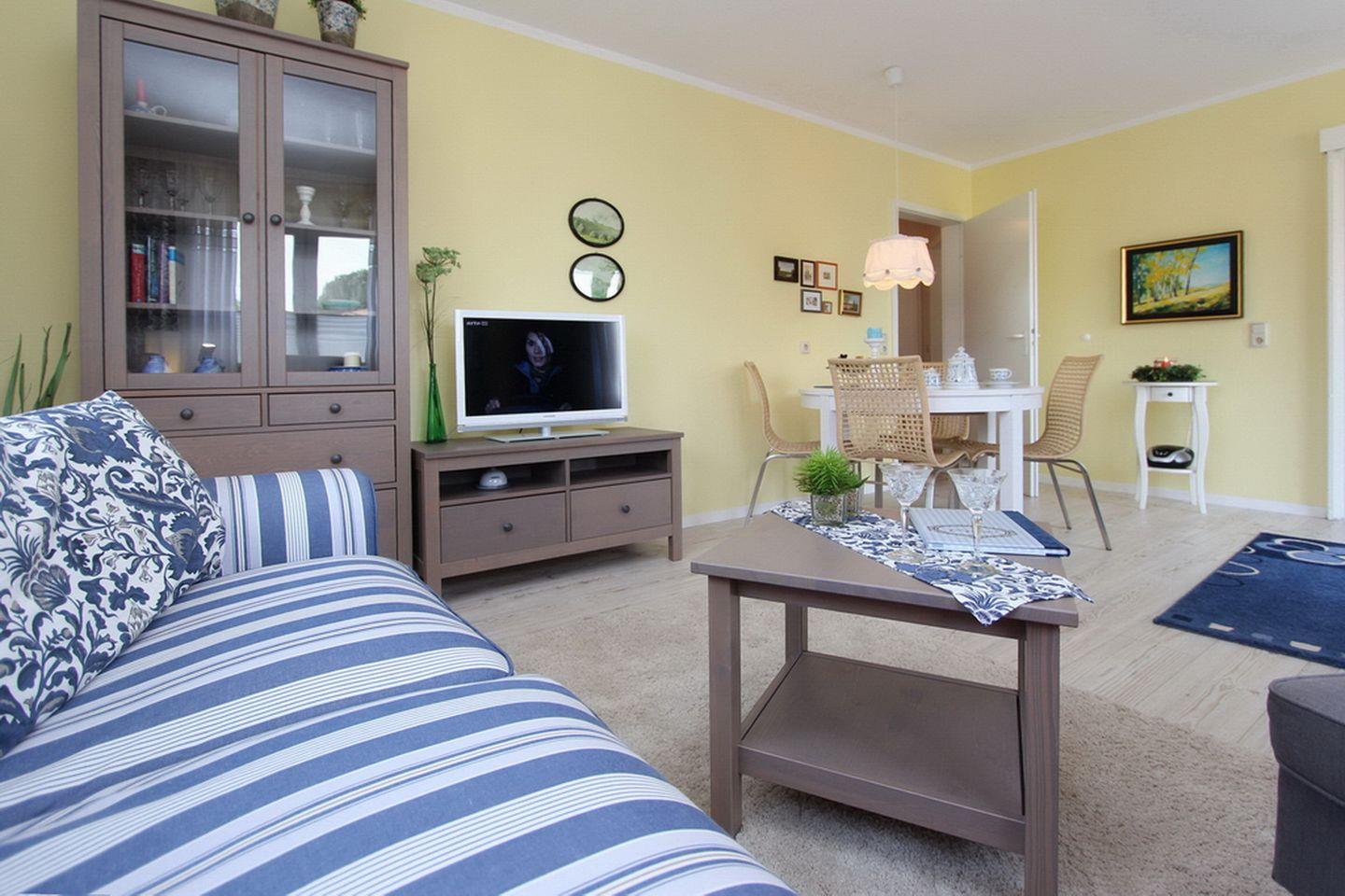 Im geräumigen Wohnzimmer, liebevoll bis ins Detail möbliert, glänzt die bequeme Schlafcouch (180 x 200 cm) mit einem Schlafplatz für die dritte Person. Zu deiner Unterhaltung stehen dir hier ein Flachbildfernseher und eine Stereoanlage zur Verfügung. Hier kannst du deinen Urlaub in seiner schönsten Form genießen.