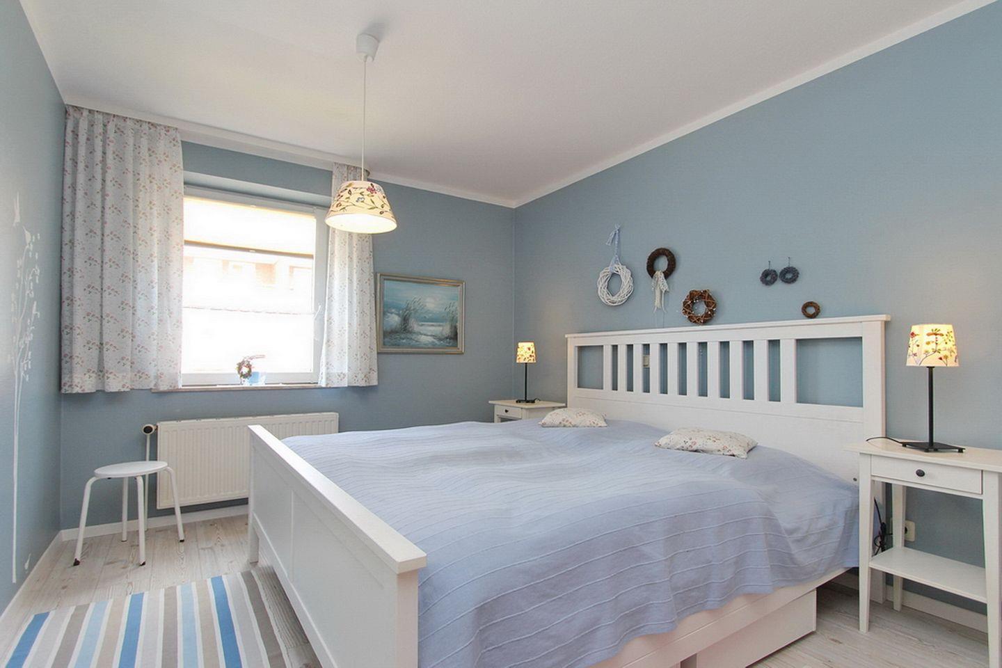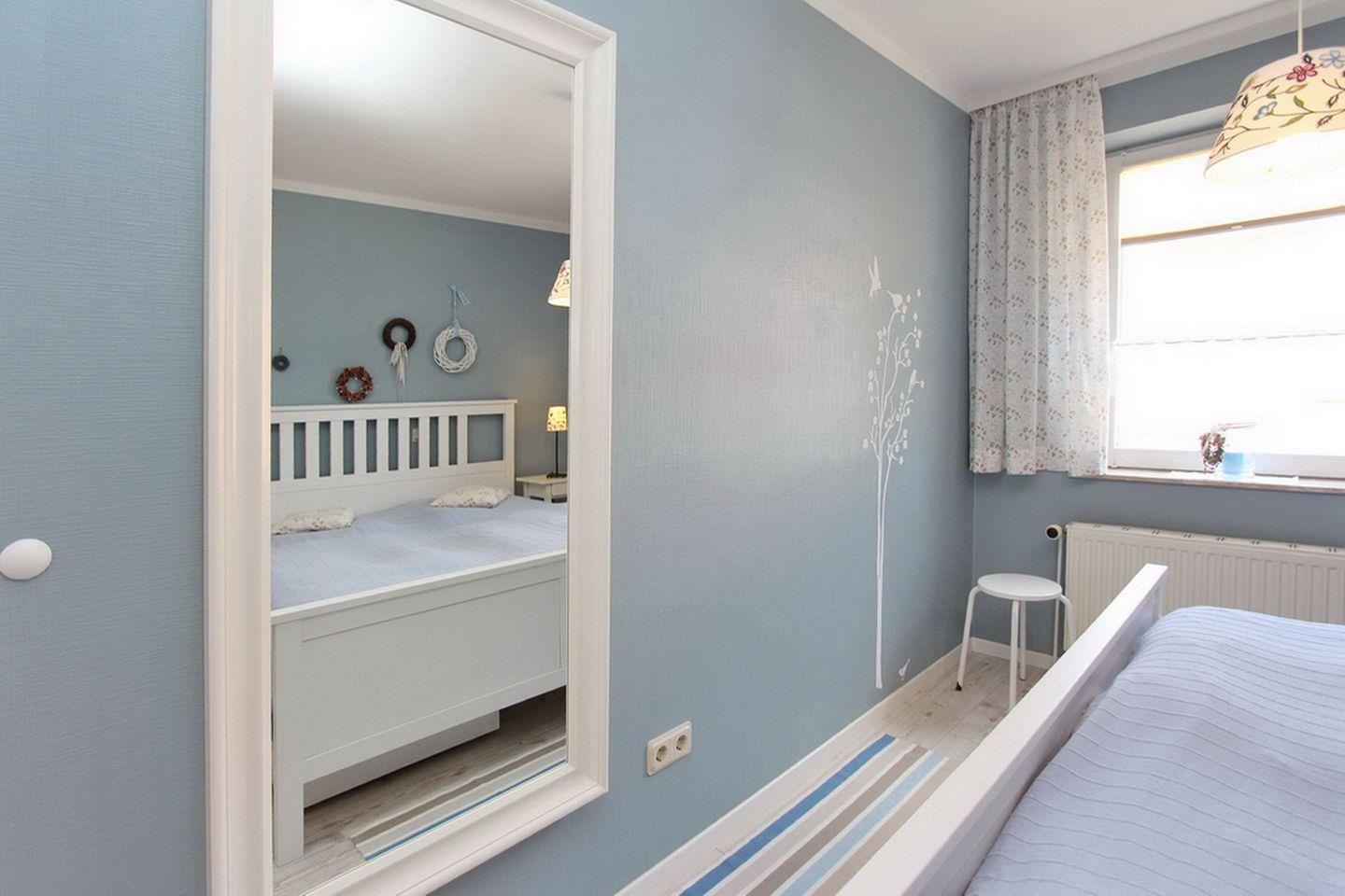 Ein komfortables Doppelbett (2 x 90 x 200 cm) im gepflegten Schlafzimmer lädt zum Träumen ein. Die Fußböden im Wohnzimmer und Schlafzimmer sind mit Design-Belag ausgelegt. An den Fenstern befinden sich Vorhänge, die als Sicht- bzw. Sonnenschutz dienen.
