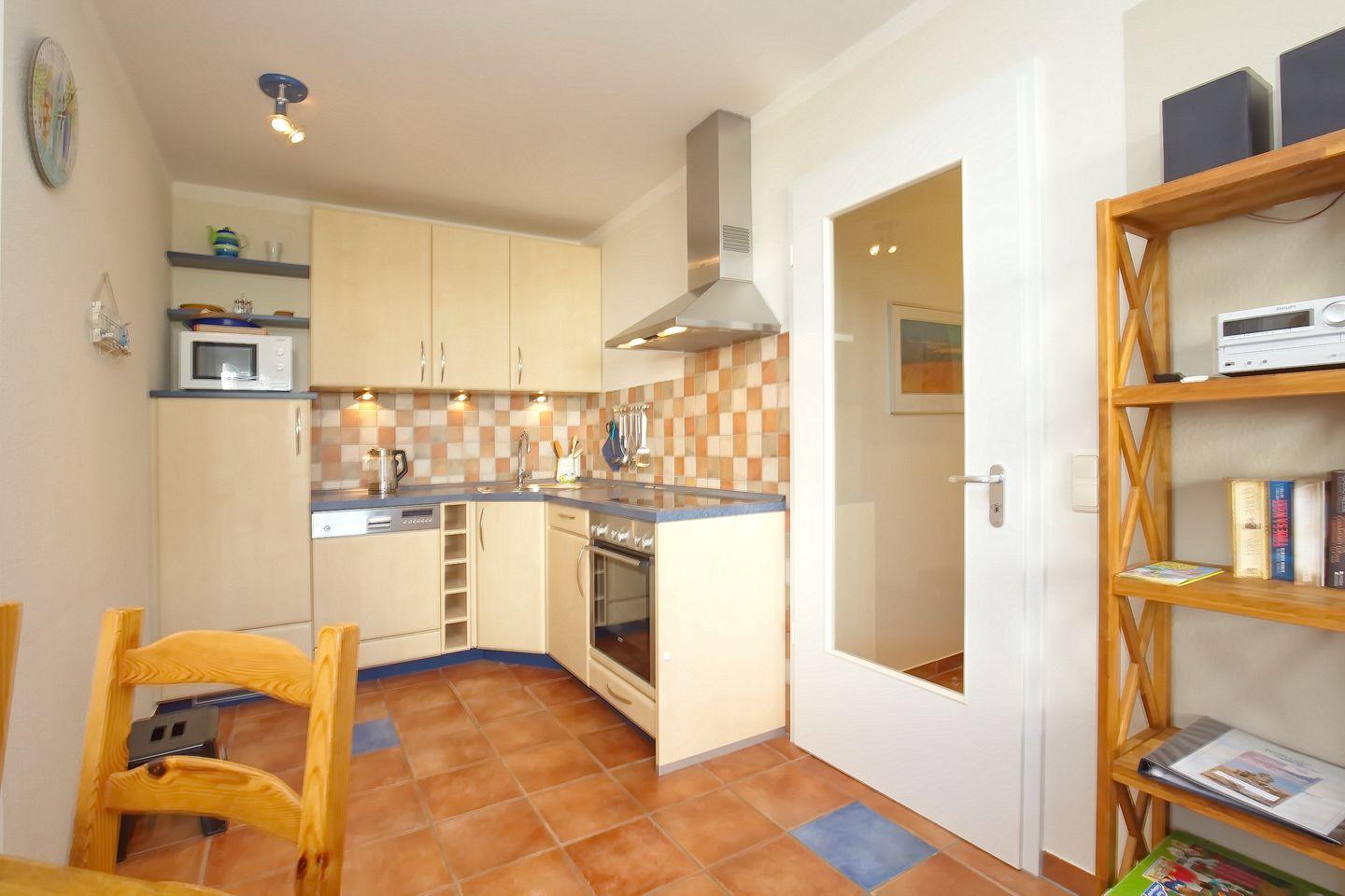 Die moderne Einbauküche mit großem Kühlschrank mit Gefrierfach, 4-Platten-Cerankochfeld, Umluft-Grill-Backofen, Geschirrspüler, Kaffeemaschine, Wasserkocher, Toaster, Mixer und Mikrowelle lässt es Ihnen im Urlaub an nichts fehlen.