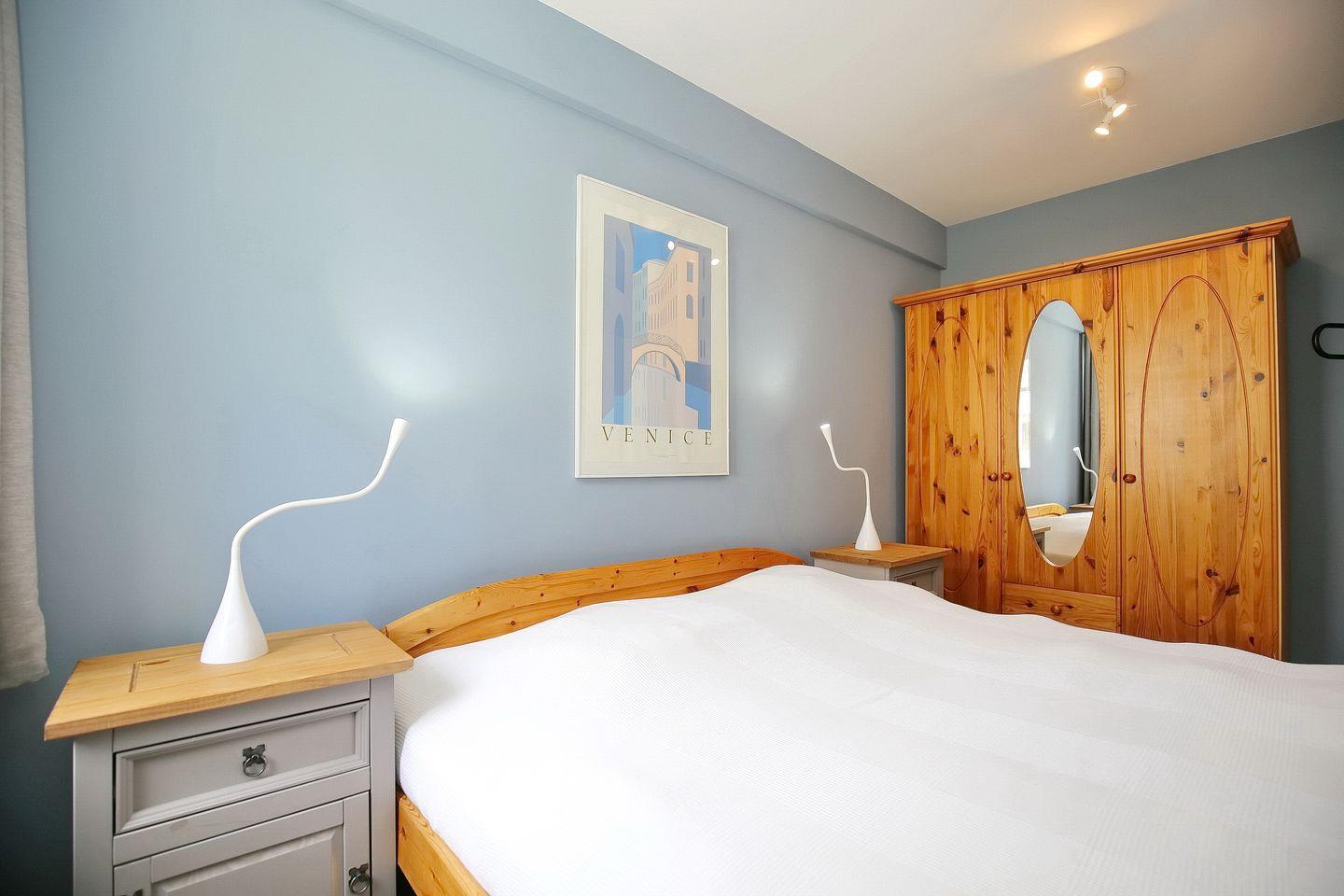 Beide Schlafzimmer in dieser Ferienwohnung verfügen über ein Doppelbett (2x 90 x 200 cm), 2 Einzelbetten (90 x 200 cm) und einen Kleiderschrank. Vorhänge und Rollos dienen in beiden Schlafzimmern als Sicht- bzw. Sonnenschutz.