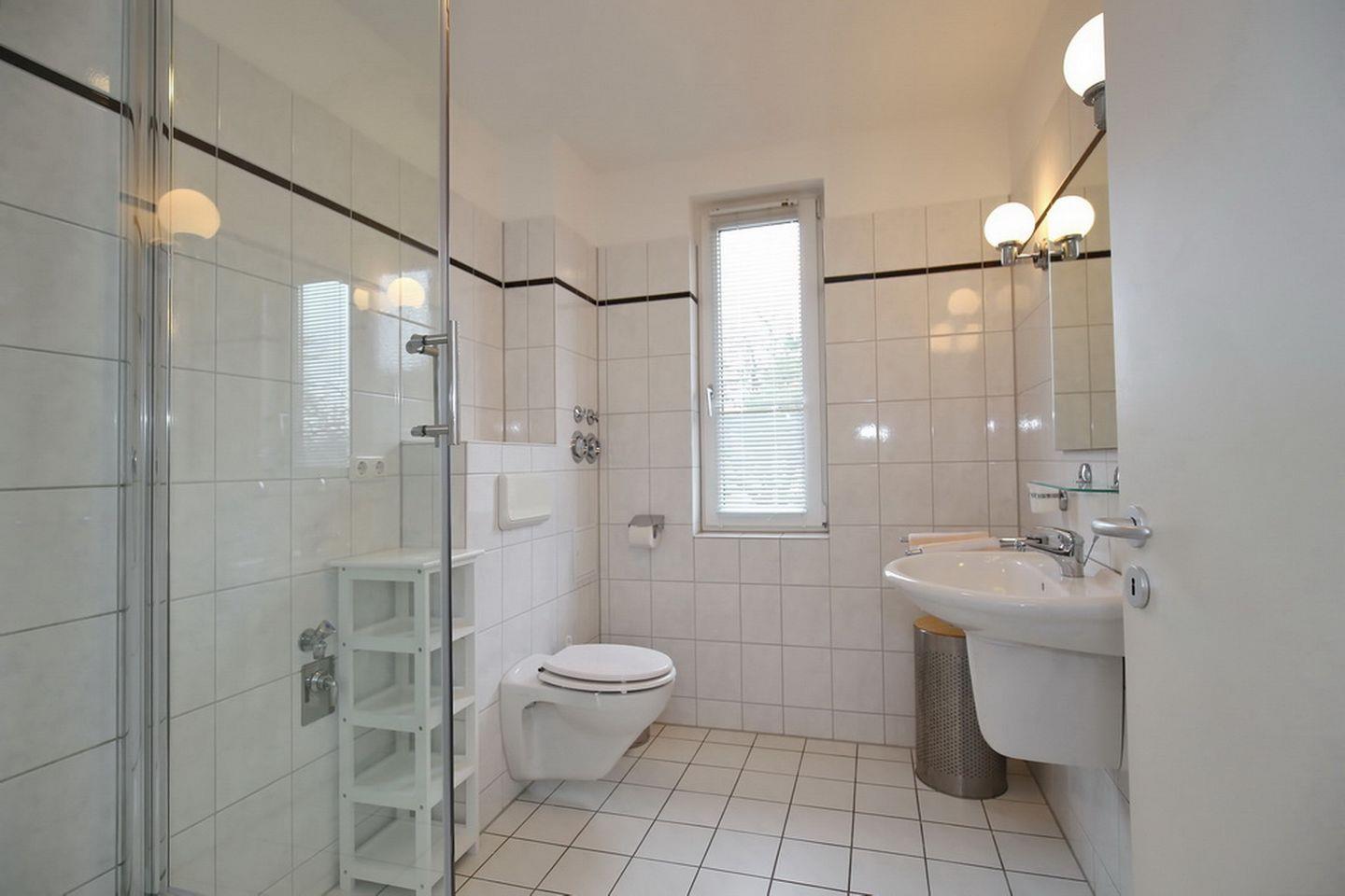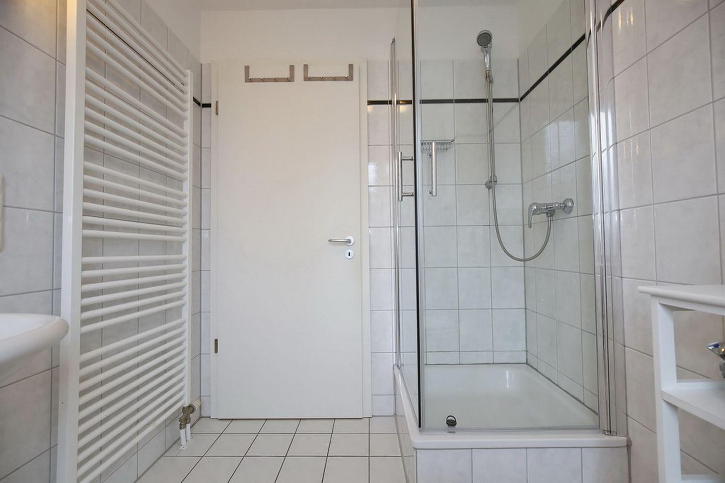 Das Duschbad hat eine moderne Glasdusche. In dieser Ferienwohnung sind ein Kinderhochstuhl und ein Kinderbett inklusive sowie ein Bollerwagen (ohne Gewähr). Als Bodenbelag wurde im Wohn- und Essbereich Parkett und in den Schlafzimmern Laminat gewählt. Das Duschbad und der Küchenbereich sind gefliest. In der Nichtraucherwohnung sind Haustiere nicht erlaubt.