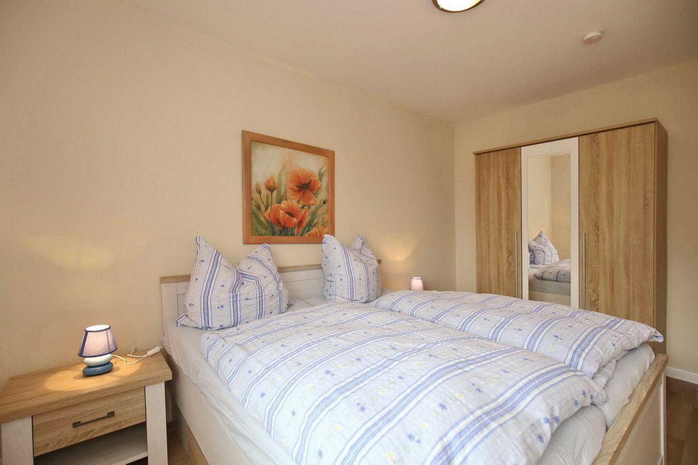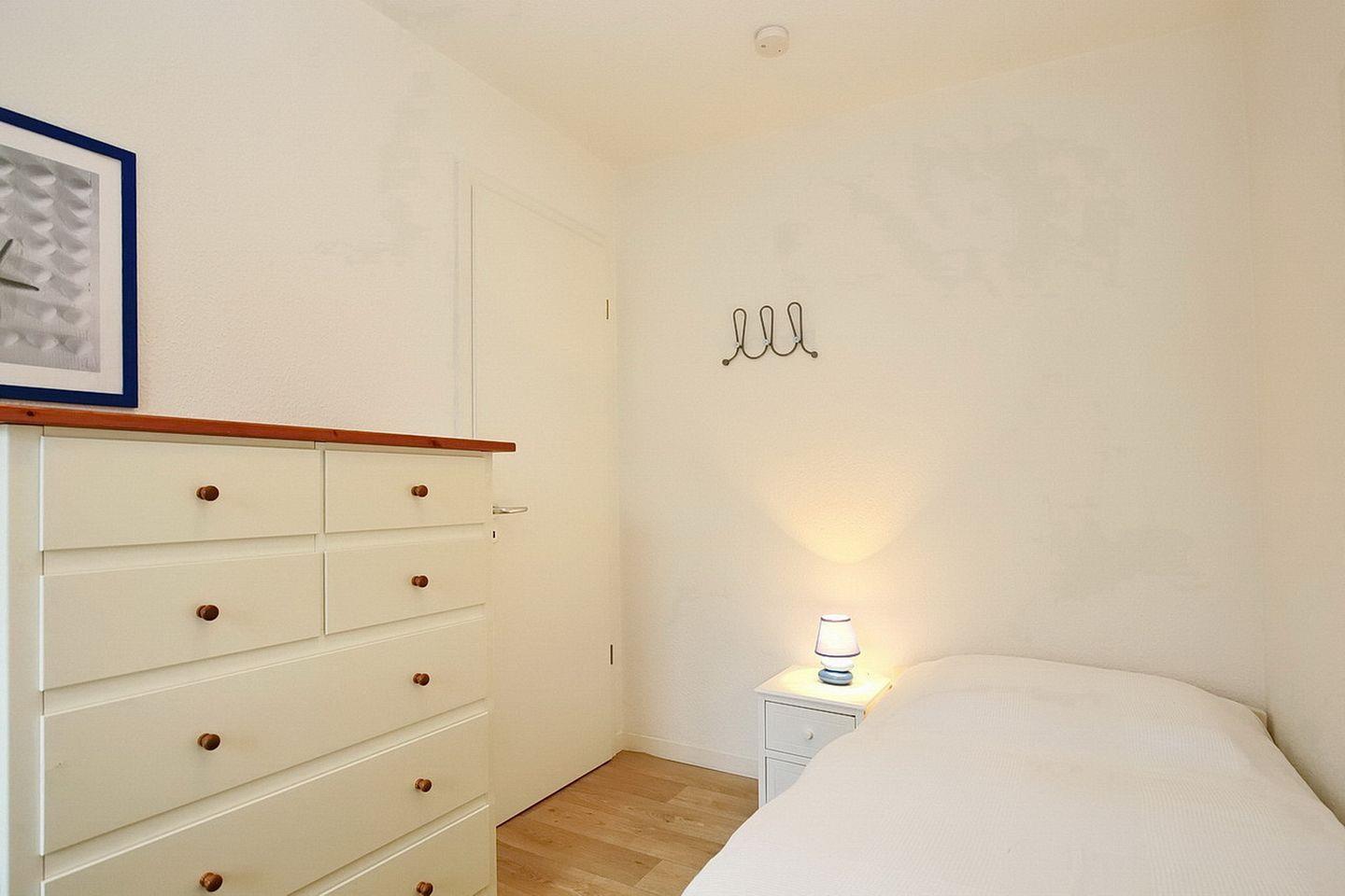 Entspanne nach einem Strandtag im ersten Schlafzimmer in einem Doppelbett (2 x 90 x 200 cm) und im zweiten Schlafraum in zwei Einzelbetten (90 x 200 cm). Platz für deine Urlaubsgarderobe findest du in einem Kleiderschrank und in einer Kommode. An den Fenstern im Schlafzimmer befinden sich Vorhänge als Sichtschutz.