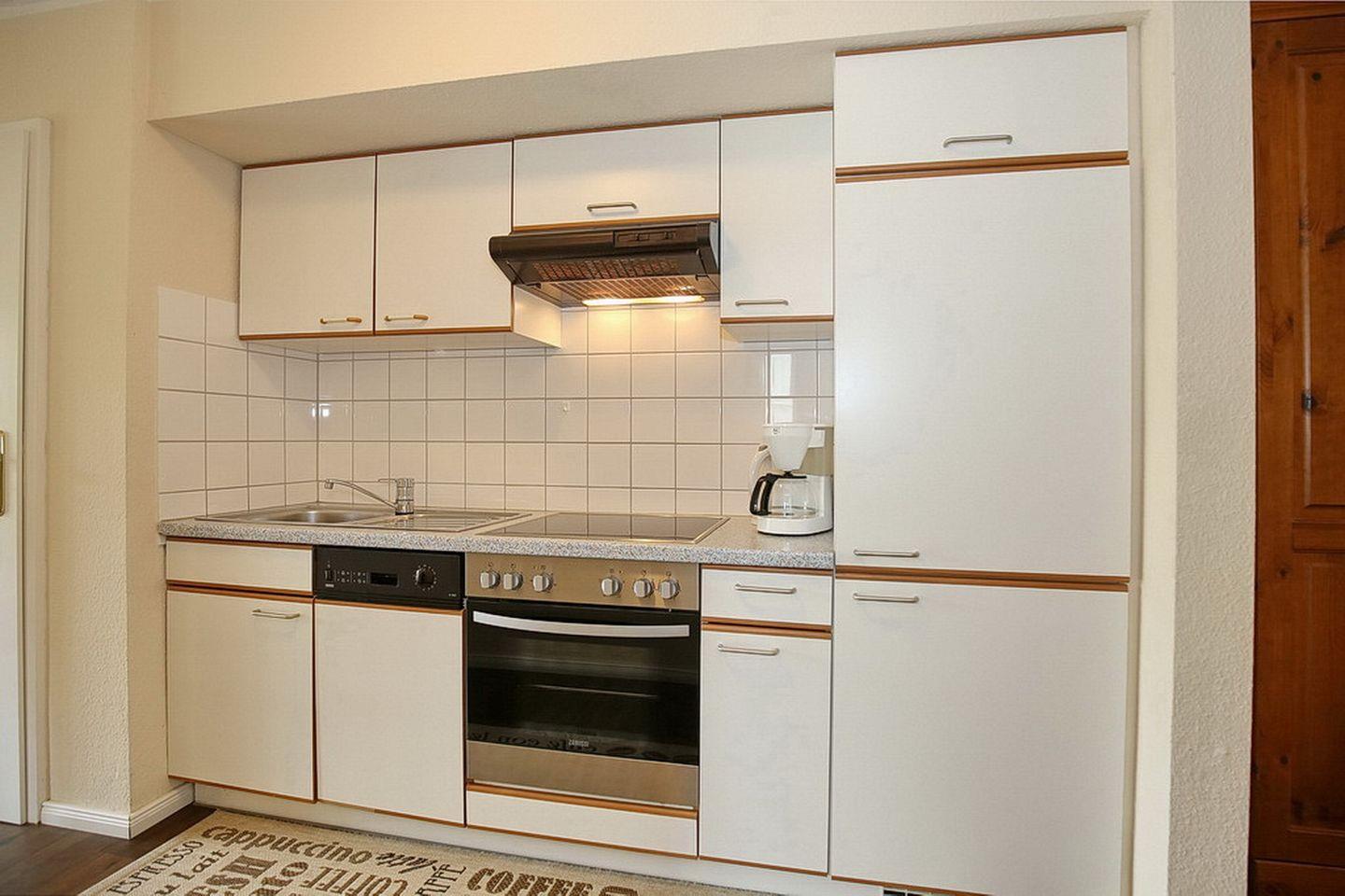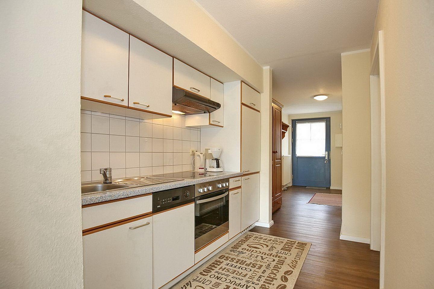 Die Küchenzeile ist mit einem Geschirrspüler, einer Mikrowelle, einem Backofen, einem 4-Platten-Cerankochfeld und einem Kühlschrank mit Gefrierfach ausgestattet. Der gesamte Wohn- und Schlafbereich ist mit Design-Belag ausgelegt.