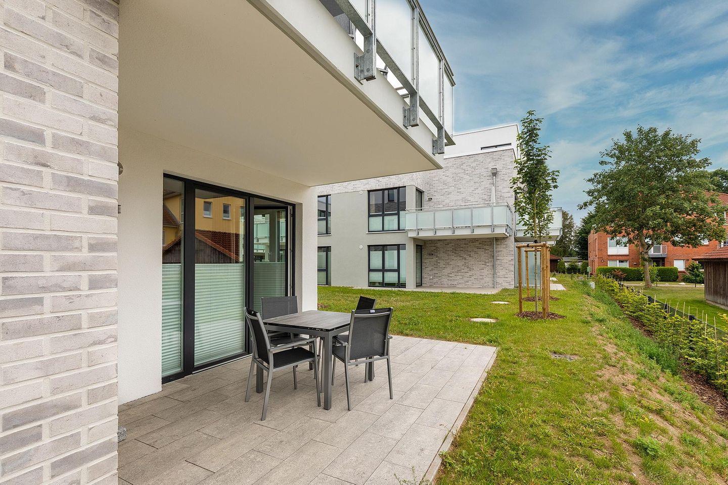 Tolles Familien-Apartment nahe Ostsee mit Terrasse, Spielplatz und Saunabereich
