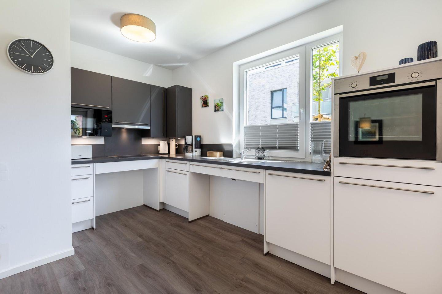 Das familienfreundliche und moderne Nichtraucher-Apartment verfügt über Fußbodenheizung, bodentiefe Fenster mit 3-fach Isolierung, kostenfreies WLAN und eine voll ausgestattete offene Küche mit Geschirrspüler, Gefrierfach, Kaffeemaschine, Toaster, Wasserkocher, Backofen und Mikrowelle sowie über einen Essbereich. Im Wohnbereich befindet sich eine Doppelschlafcouch (1,60 x 2,00 m) und ein großer Flatscreen-TV mit Blu-ray-Player. Das separate Schlafzimmer ist mit einem modernen Boxspringbett (1,80 x 2,00 m) und einem Flatscreen-TV ausgestattet. Im stilvollen Badezimmer befinden sich eine ebenerdige Dusche, ein Waschtisch mit Föhn, Kosmetikspiegel und Handtuchheizkörper. Das Apartment verfügt über einen Flur mit Garderobe. Nach einem erholsamen Urlaubstag lässt es sich auf der mit Gartenmöbeln und Sonnenschirm ausgestatteten und sonnigen Terrasse, herrlich entspannen. Die Terrasse ist vom Wohnzimmer aus begehbar.