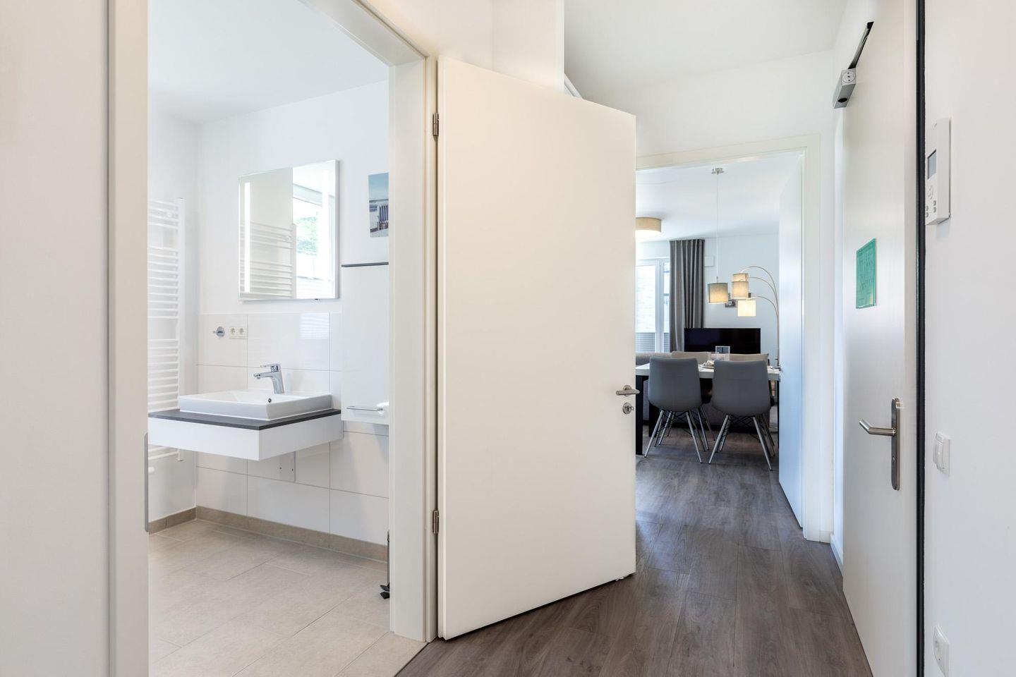 Das 58 m² große und barrierearme 2-Zimmer Apartment ist für bis zu 4 Personen geeignet. Besonders hervorzuheben ist die sonnenreiche und großzügige Terrasse in Süd-Ost Lage; hier könnt ihr schon in der Morgensonne das gemeinsame Frühstück genießen und die wohltuende Meeresluft atmen. Das Apartment ist rollstuhlfreundlich konzipiert.