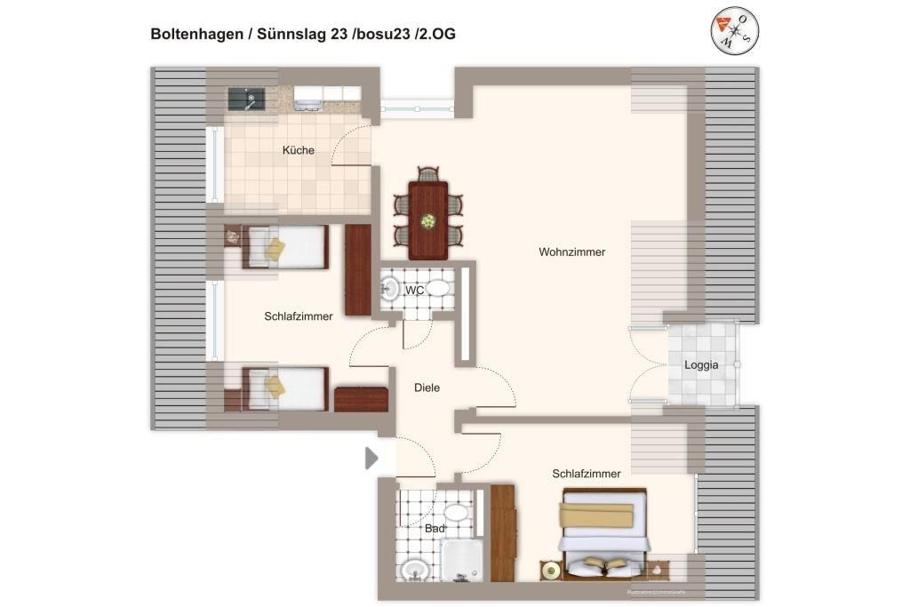 Im malerischen Ostseeheilbad Boltenhagen findet ihr das Apartmenthaus „Sünnslag“. Nicht weit vom Strand entfernt lädt das 75 qm große 3-Zimmer-Apartment mit kleinem Balkon bis zu 6 Urlaubsgäste ein, um die frische Meeresbrise und entspannte Tage an der See zu genießen.