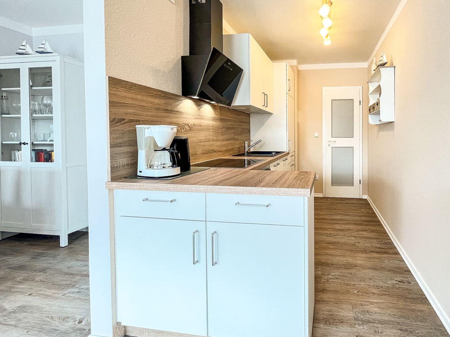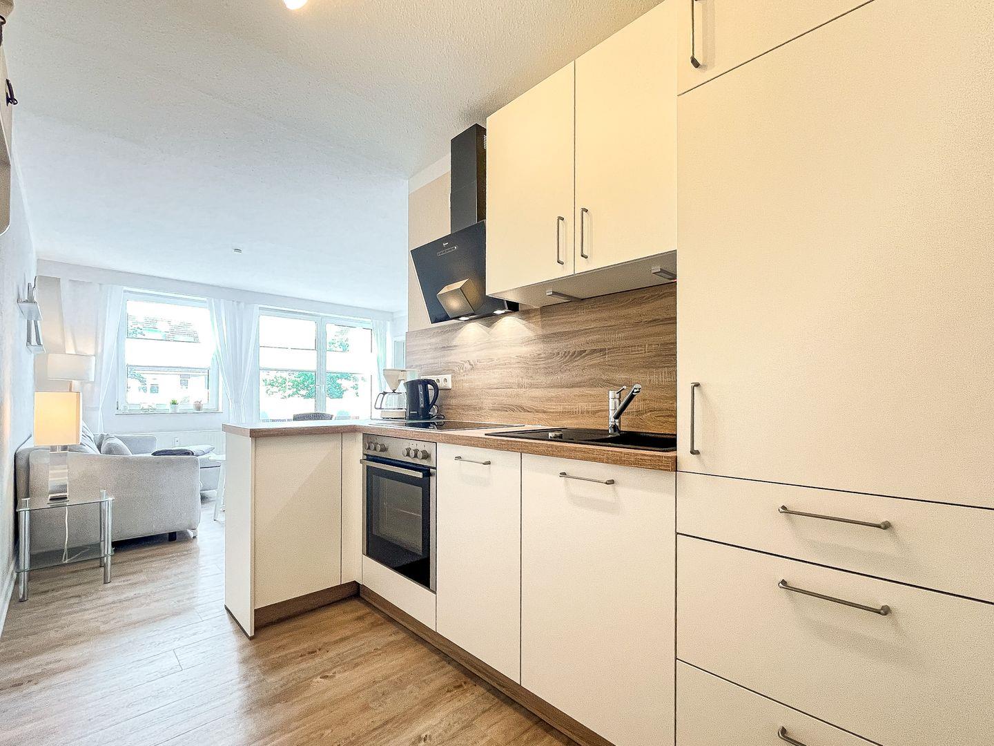 In der modernen Küchenzeile sind Geschirrspüler, 4-Plattenkochfeld mit Backofen und Kühlschrank mit Gefrierfach vorhanden. Mit viel Liebe zum Detail findest du alles für die Zubereitung deiner Mahlzeiten.
