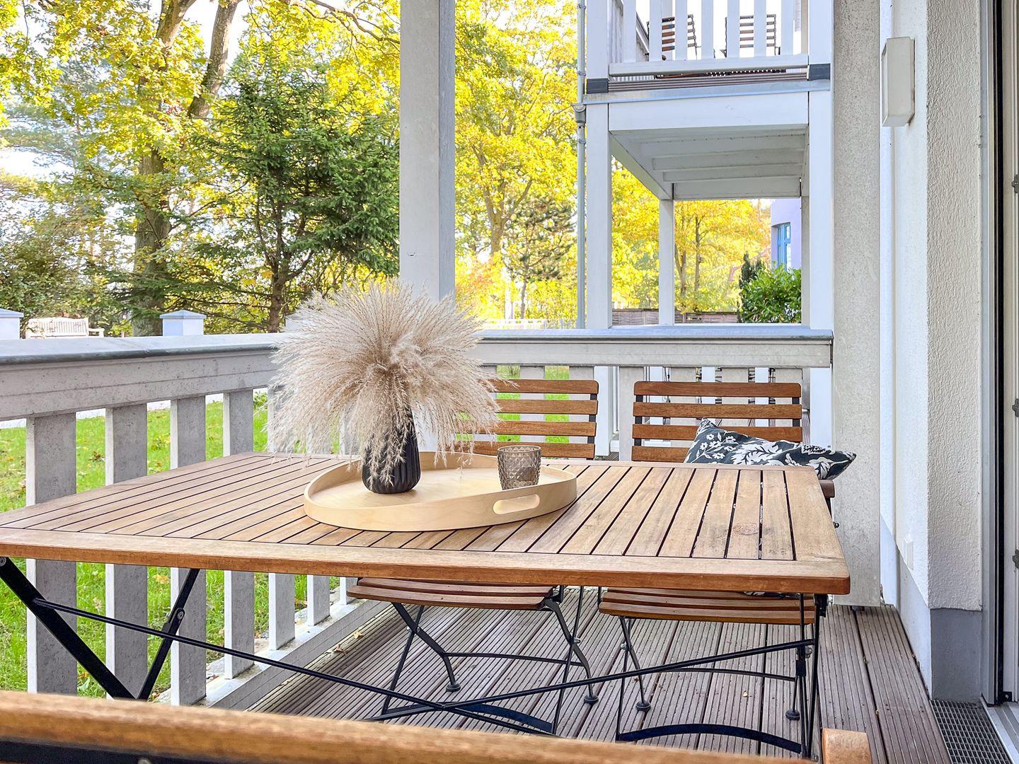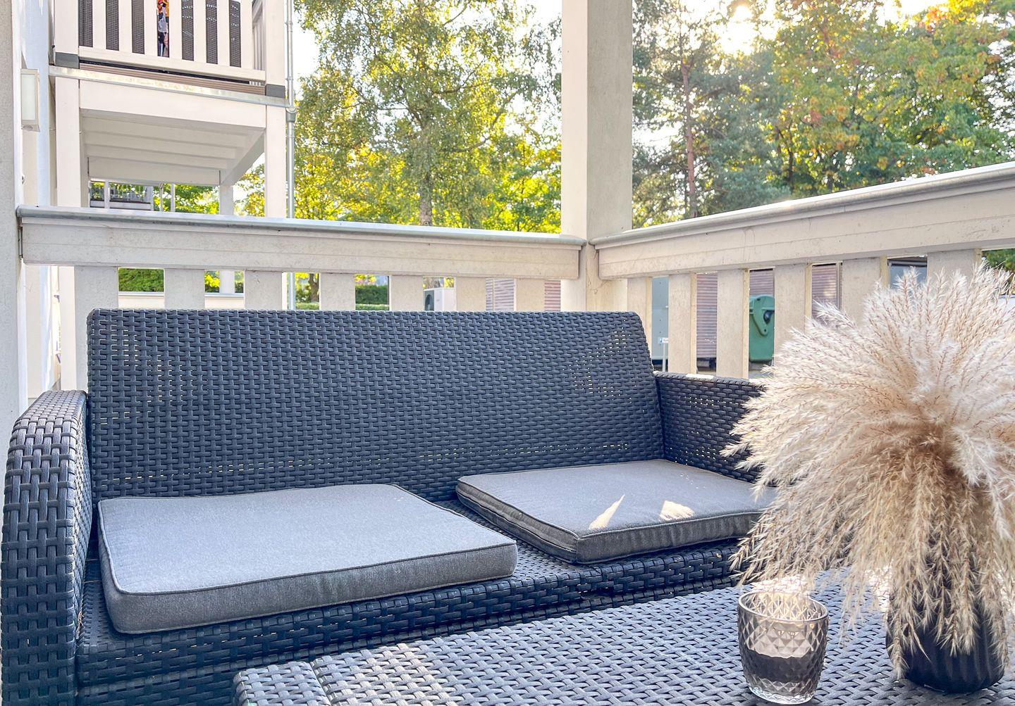 Moderne 3-Zimmer-Wohnung mit 2 Balkonen und Meerblick, nur 30 m vom Strand in Boltenhagen entfernt.