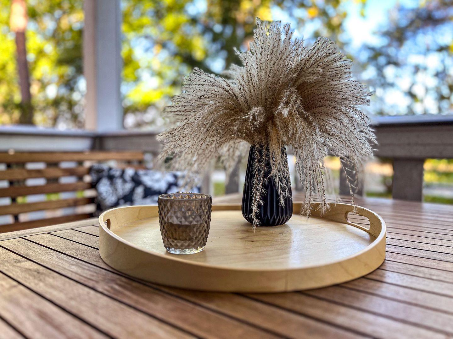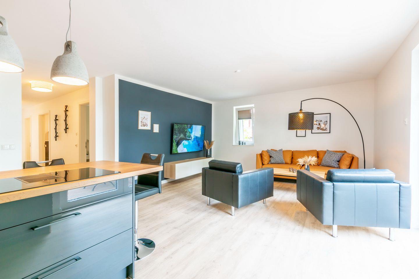 Die ca. 90 m² große 3-Zimmer-Ferienwohnung ist liebevoll und modern eingerichtet. Sie verfügt über ein Wohnzimmer, eine Küche, zwei Schlafzimmer, ein Badezimmer, ein Gäste-WC sowie zwei Balkone. In der gesamten Wohnung ist ein Vinylbelag ausgelegt. Das Badezimmer und das Gäste-WC sind gefliest. Die Strandentfernung beträgt ca. 30 Meter.