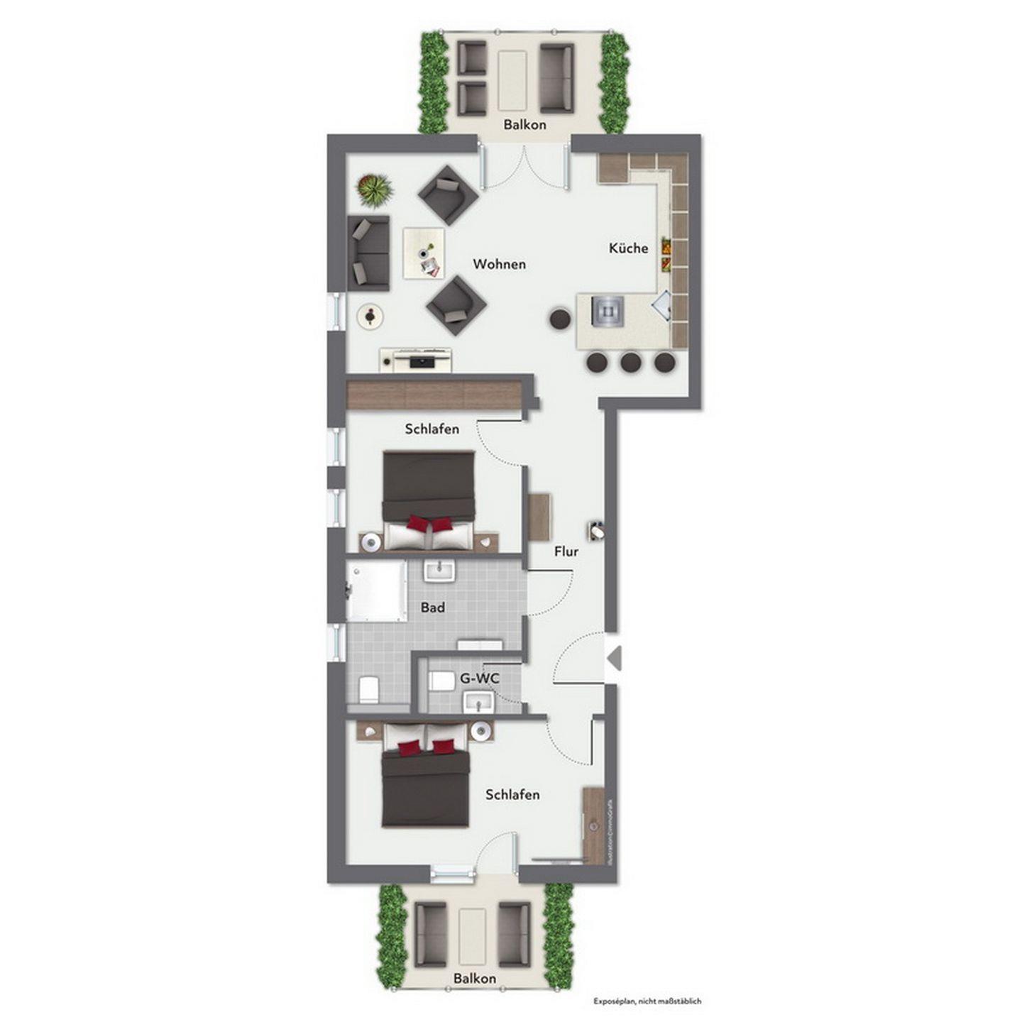 Auch das zweite Schlafzimmer ist über den Flur erreichbar und verfügt über ein gemütliches Doppelbett (2 x 90 x 200 cm). Deine Kleidung kann in einer Kommode untergebracht werden. Für einen erholsamen Schlaf dienen Verdunklungsvorhänge. Ein zusätzlicher Flachbildfernseher steht dir hier zur Verfügung. Über dieses Schlafzimmer gelangst du zum Südbalkon. Auf der bequemen Lounge-Garnitur kannst du es dir gemütlich machen und die Abendsonne genießen.