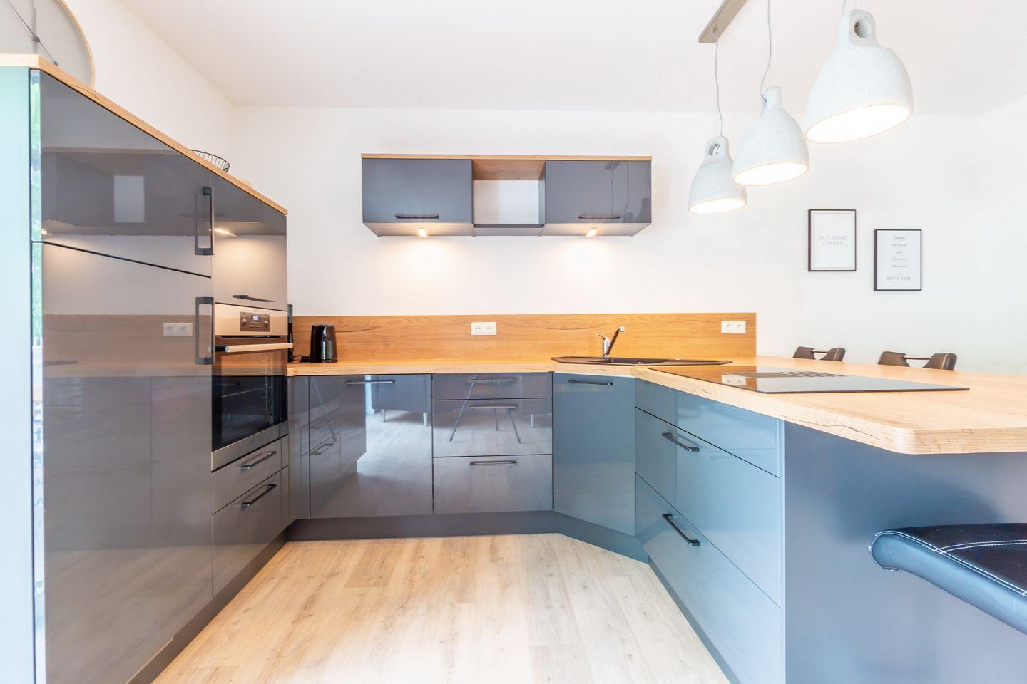 Die im Wohnzimmer integrierte Küche lässt keine Wünsche offen. Es ist alles vorhanden, was du zur Zubereitung der Mahlzeiten benötigst. Dazu zählen ein Herd mit 4 Cerankochfeldern sowie ein Backofen, ein Kühlschrank mit Gefrierfach, eine Geschirrspülmaschine, eine Mikrowelle, ausreichend Geschirr, Besteck und Gläser. Des Weiteren verfügt die Küche über einen Tresen, an dem du gemeinsam kochen und speisen kannst.