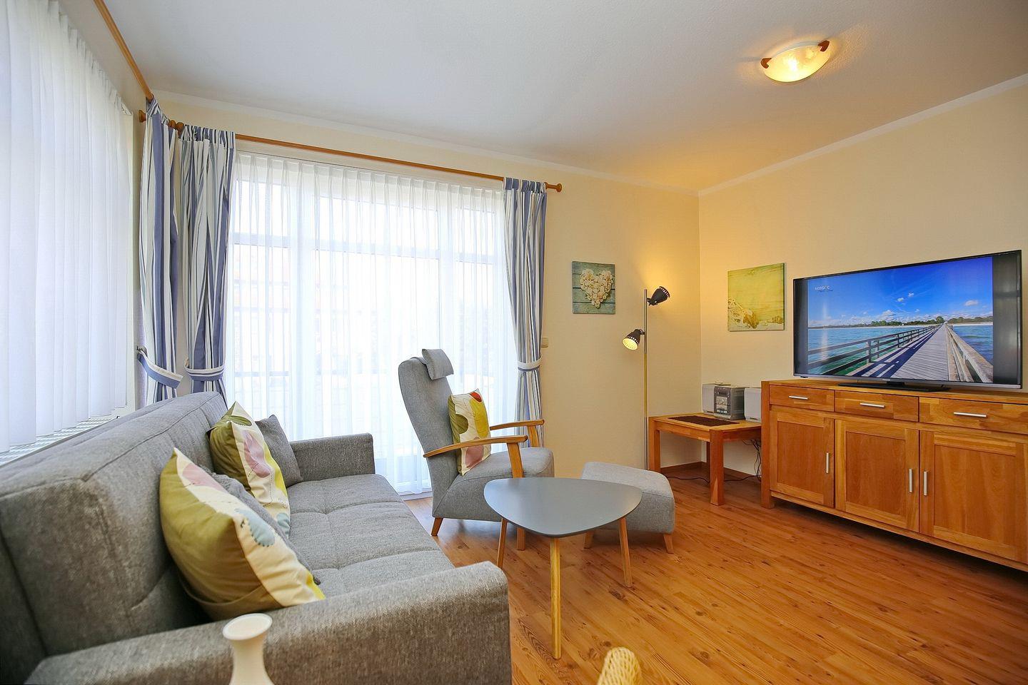Komfortable 2-Zimmer-Ferienwohnung mit Balkon und Ostseeblick, nur 100 m vom Strand in Boltenhagen entfernt.