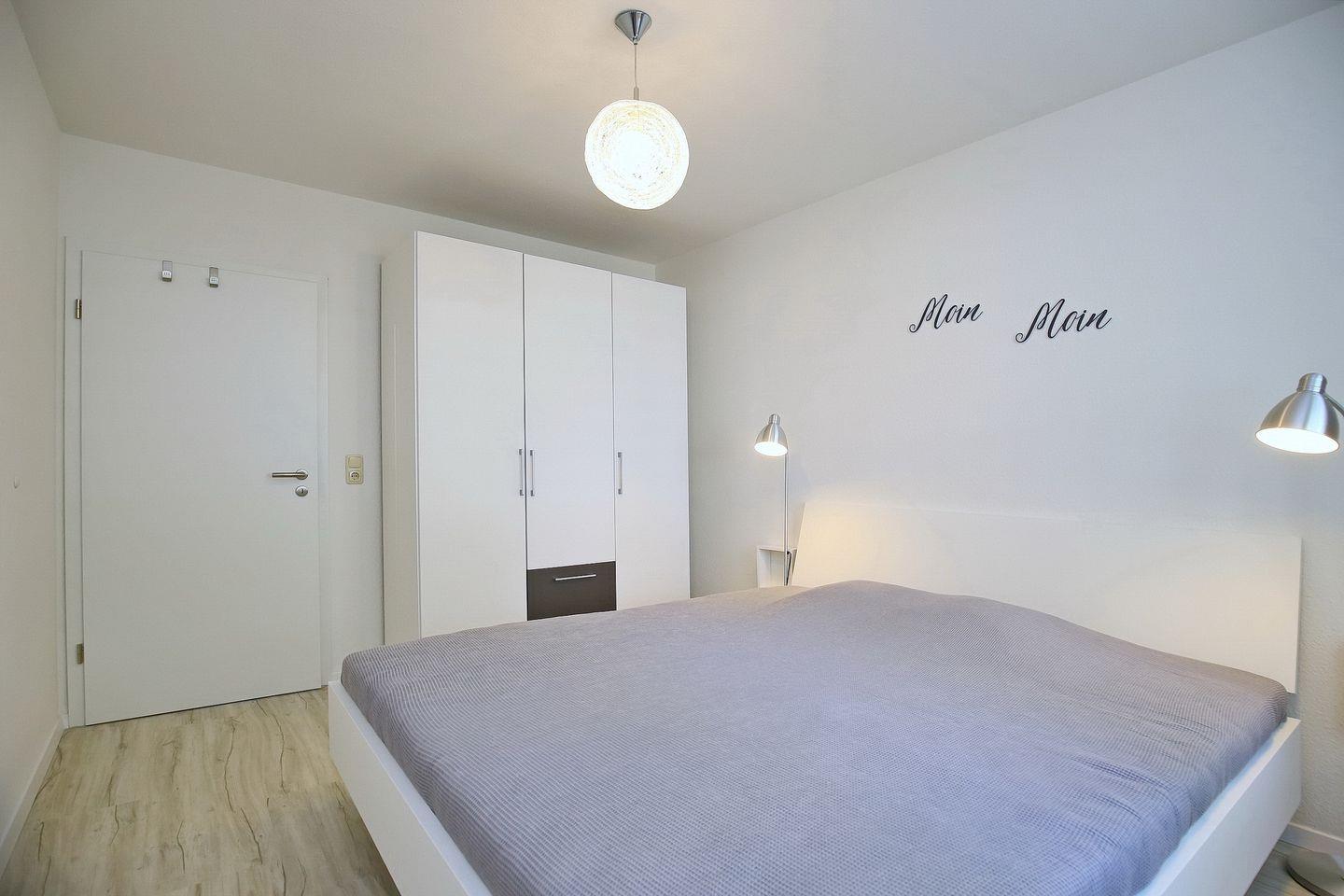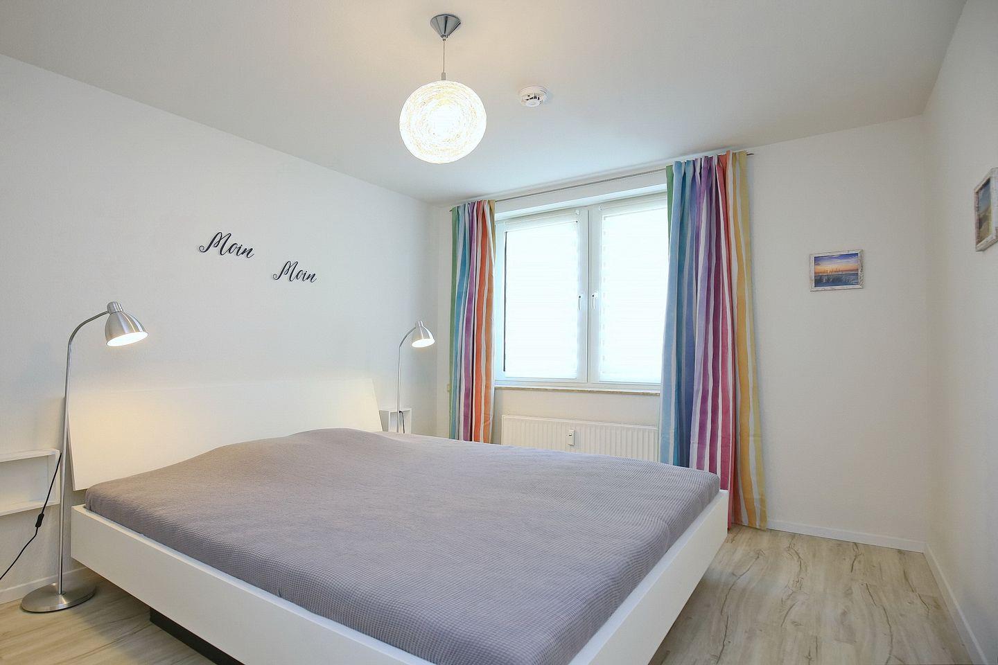 Das Schlafzimmer verfügt über ein Doppelbett (2 x 90 x 200 cm). Als Bodenbelag wurde Vinyl gewählt. Für deine Urlaubsgarderobe steht dir selbstverständlich ein Kleiderschrank zur Verfügung. Die Fenster werden mit Vorhängen verdunkelt.