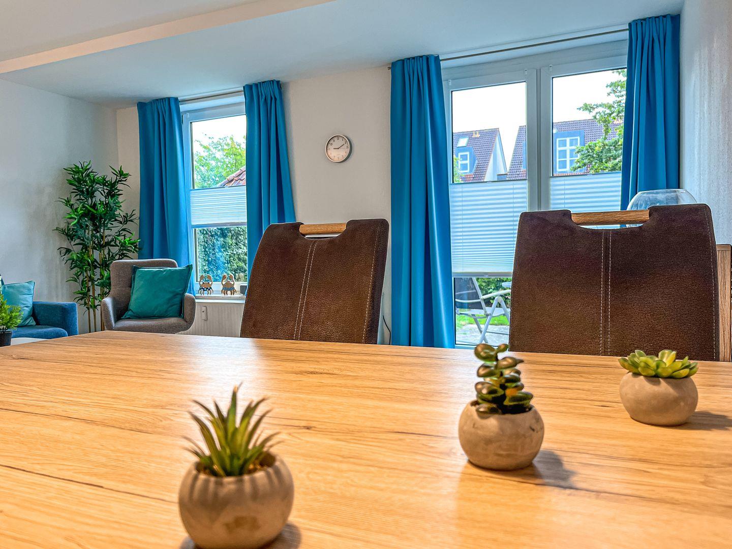 Auf ca. 53 m² kannst du hier deinen Urlaub genießen. Die Wohnung mit Terrasse in Süd-Ost Lage befindet sich im Erdgeschoss. Hier erwartet dich ein Wohn- und Essbereich, eine separate Küche, ein Schlafzimmer und ein Duschbad. Die Entfernung zum Strand von der Ferienanlage Sünnslag beträgt ca. 400 m.
