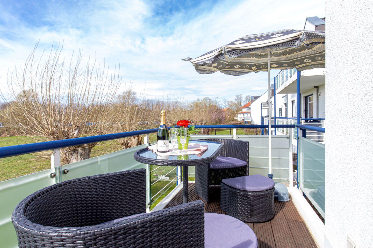 Charmante 2-Zimmer-Ferienwohnung in Boltenhagen mit Balkon und Blick auf das Naturschutzgebiet.