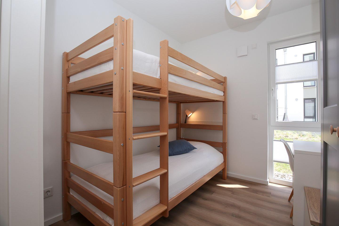 Im zweiten Schlafzimmer steht ein Etagenbett für 2 Personen (2x 90x200) zur Verfügung. Deine Kleidung kann ebenfalls in einem Kleiderschrank untergebracht werden.