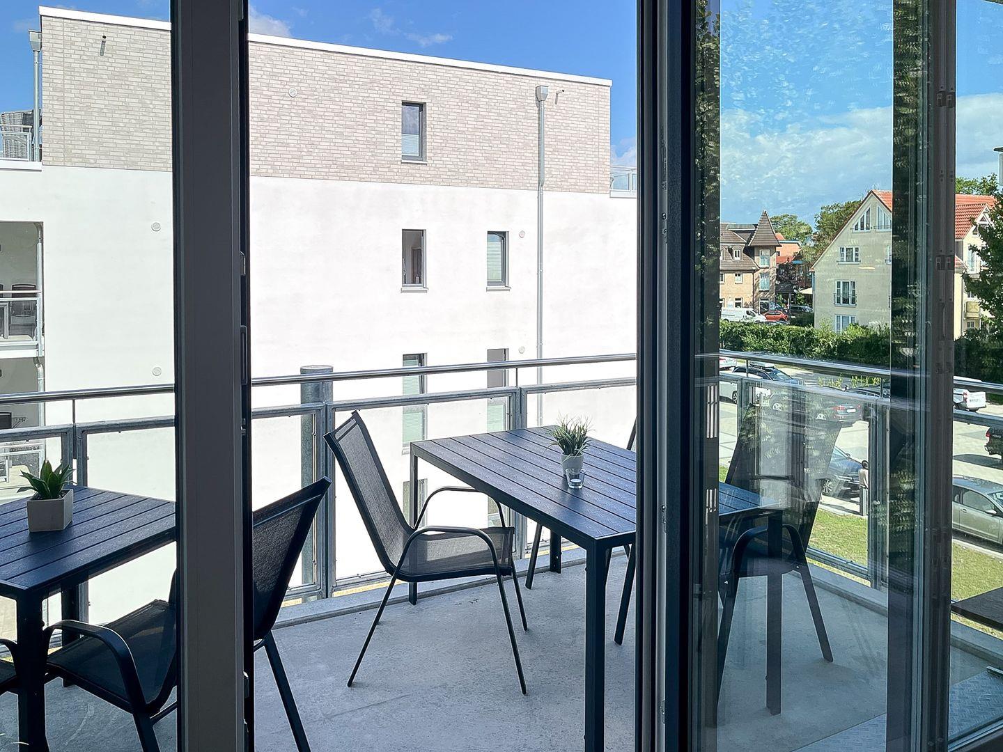 Die 4-Zimmer-Wohnung im Haus 2 der Weißen Villen ist ca. 87 m² groß und bietet Platz für bis zu 5 Personen. Die Ferienwohnung befindet sich im 2. Obergeschoss, der Balkon ist in Richtung Nord/West ausgerichtet. Ein Fahrstuhl sowie WLAN (ohne Gewähr) sind vorhanden.