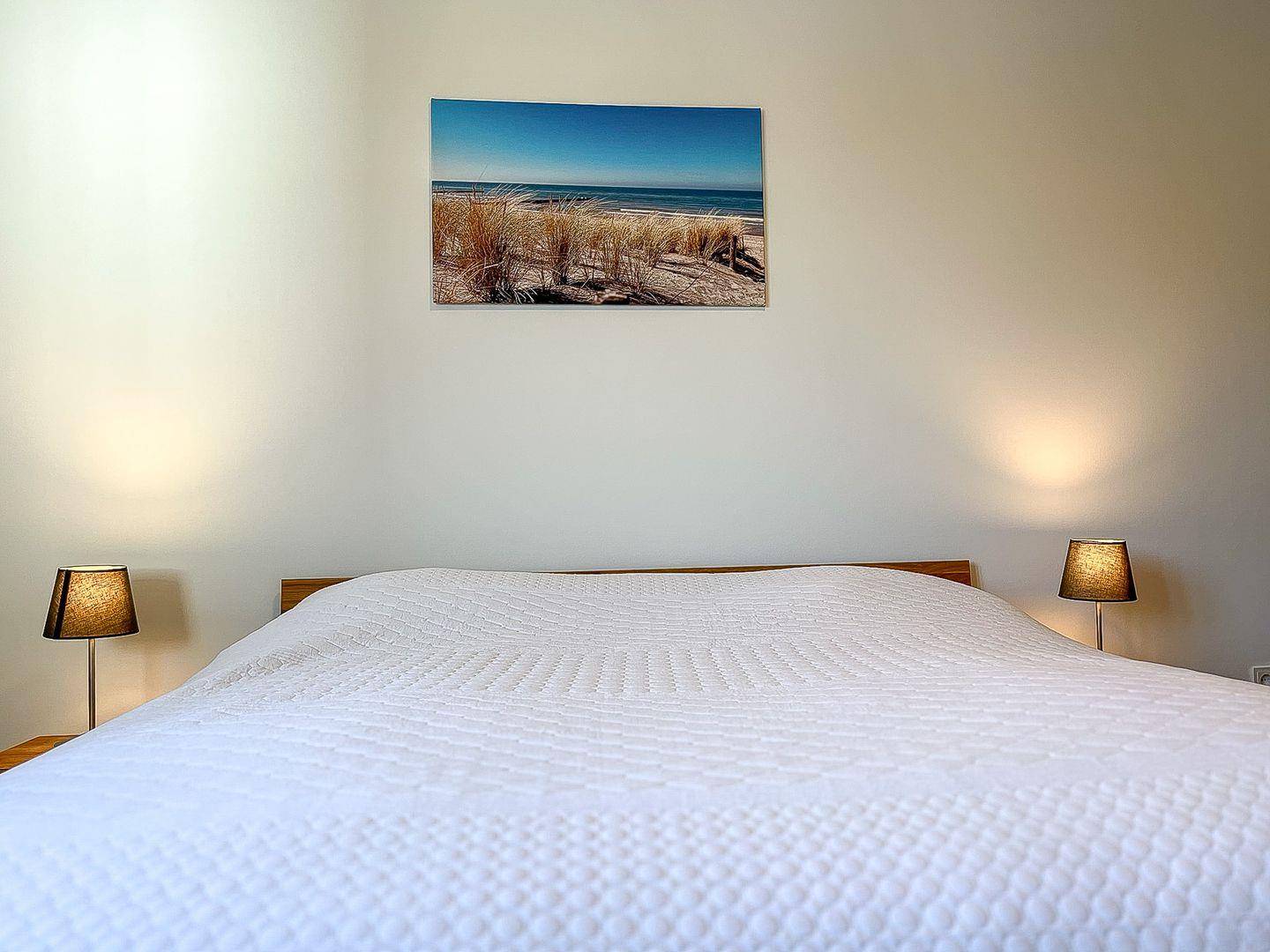 Als Service findest du in den Weißen Villen bereits 2 bezogene Betten im Schlafzimmer für 2 Personen vor.