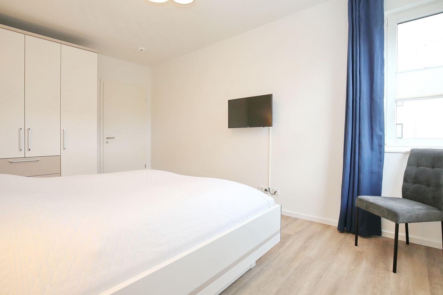 Dein erstes Schlafzimmer verfügt über ein komfortables Doppelbett (2 x 90 x 200 cm). Die Aufbewahrung deiner Kleidung ist kein Problem, da das Schlafzimmer über einen geräumigen Kleiderschrank verfügt. In diesem Schlafzimmer steht zusätzlich ein 2. Fernseher.