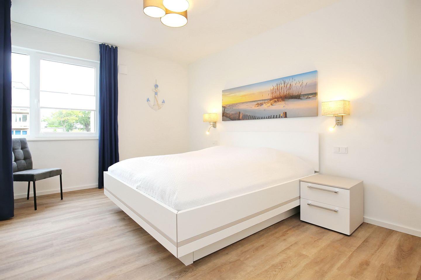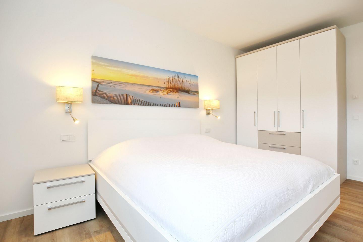 Als Service findest du in den Weißen Villen bereits 2 bezogene Betten im Schlafzimmer für 2 Personen vor.