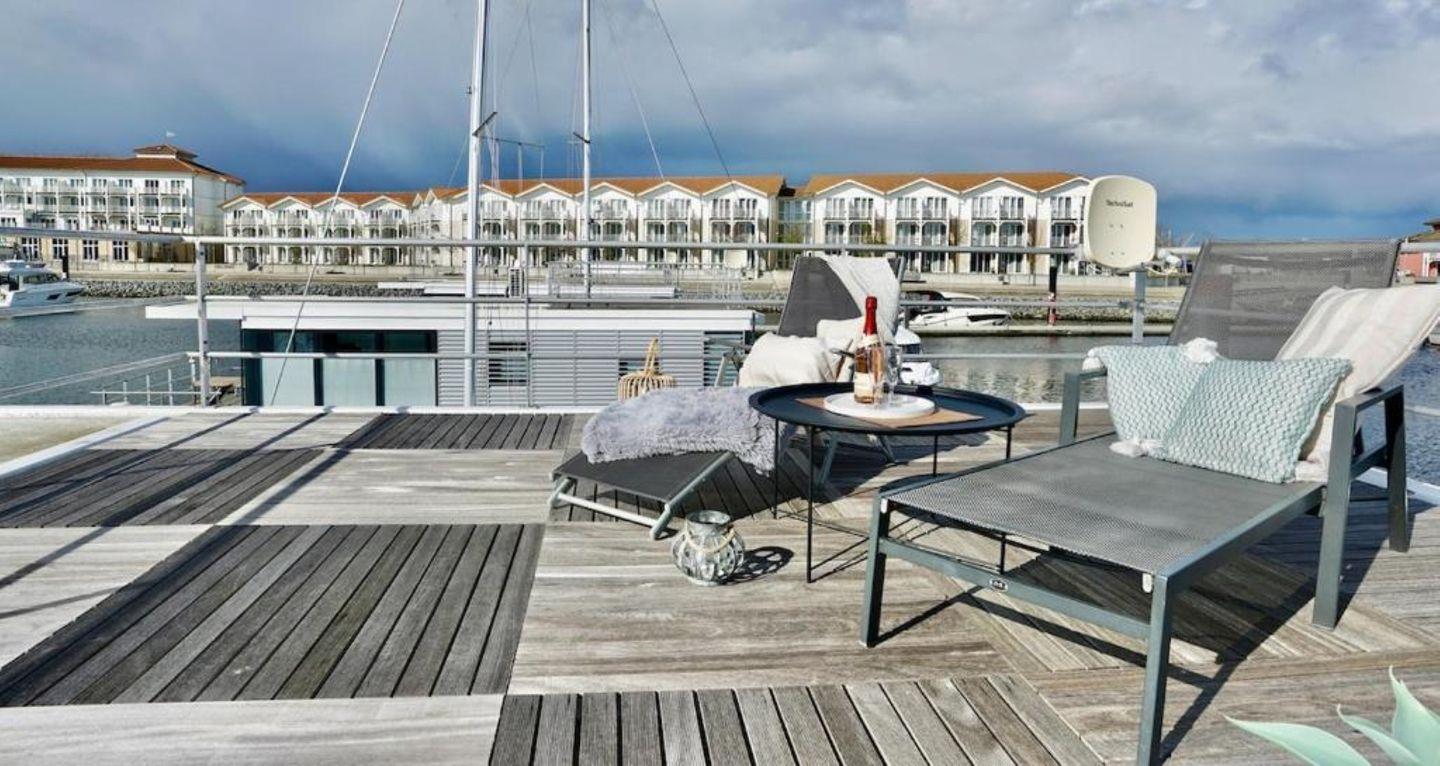Modernes Hausboot mit zwei Terrassen in Boltenhagen
