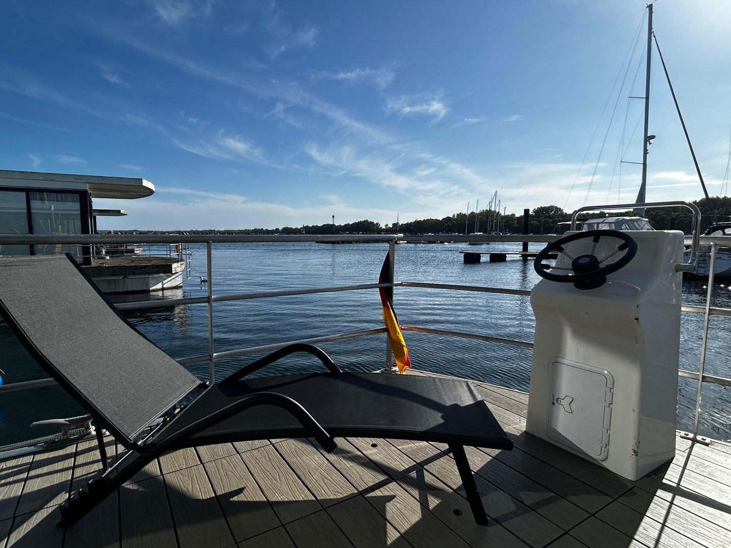 15 qm Terrasse am Bug, möbliert, + Dachterrasse 25 qm, Kostenfreier Parkplatz in der Nähe des Hafens