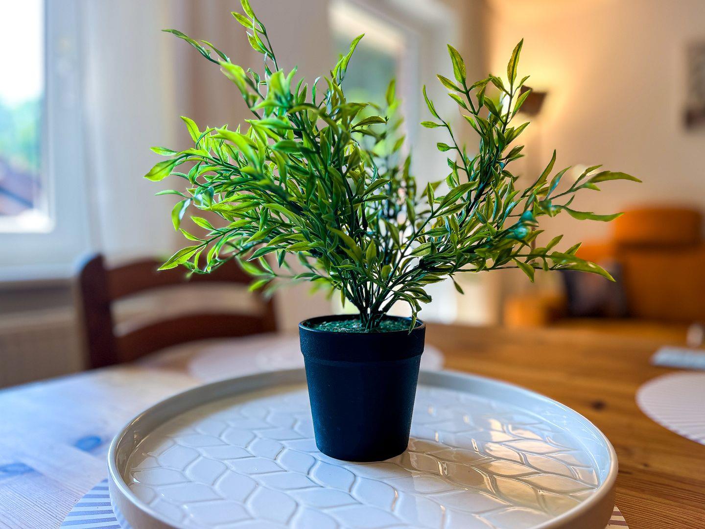 Im Wohnzimmer und den Schlafzimmern wurde als Bodenbelag Laminat gewählt. Das Bad ist gefliest. Ein Bügeleisen und Bügelbrett sowie ein zusätzlicher Wäscheständer stehen ebenfalls für unsere Gäste bereit.