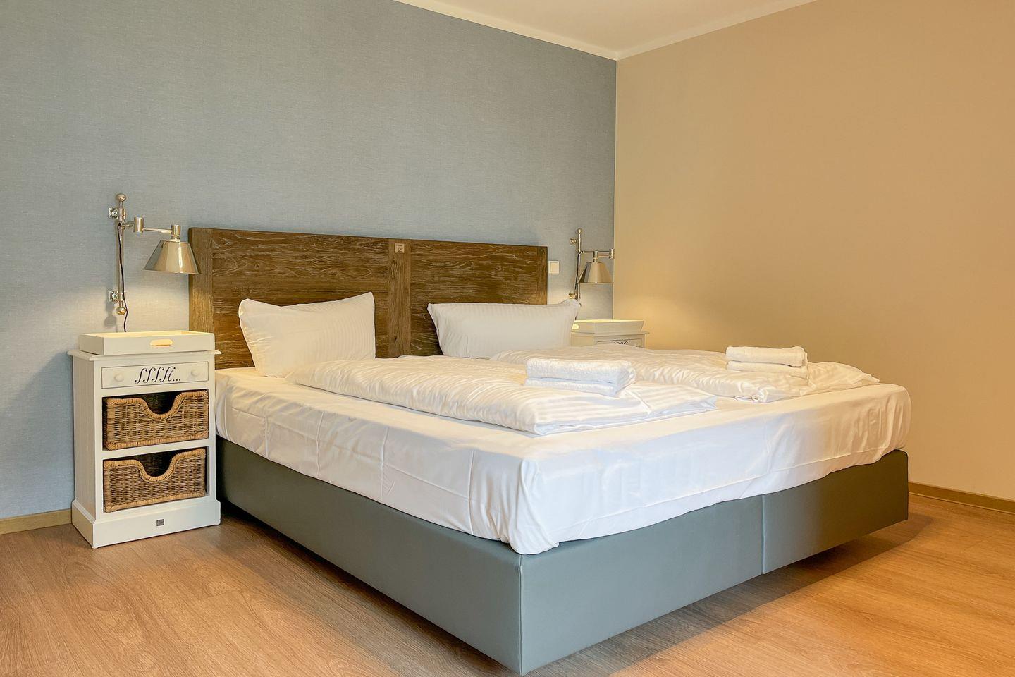 Im separaten Schlafzimmer befindet sich ein Doppelbett (2x 90x200?cm) sowie ein zweiter Fernseher, sodass Du auch hier entspannte Abende verbringen kannst.