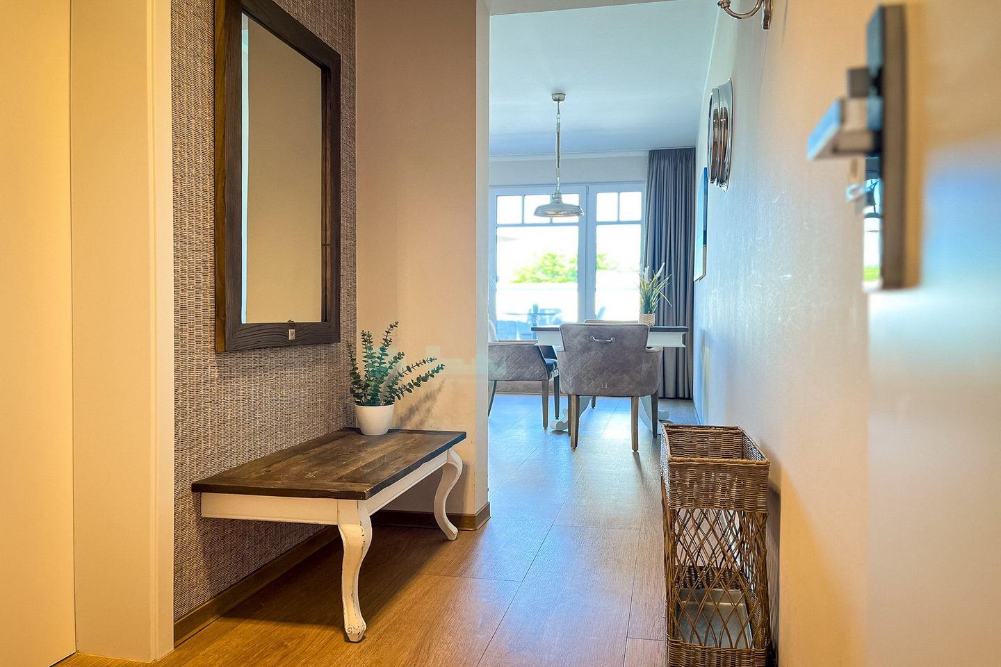 Die Ferienwohnung 53 im Baltischen Hof in Boltenhagen ist eine hochwertige 2-Zimmer-Wohnung für bis zu drei Personen mit eigener Sauna.