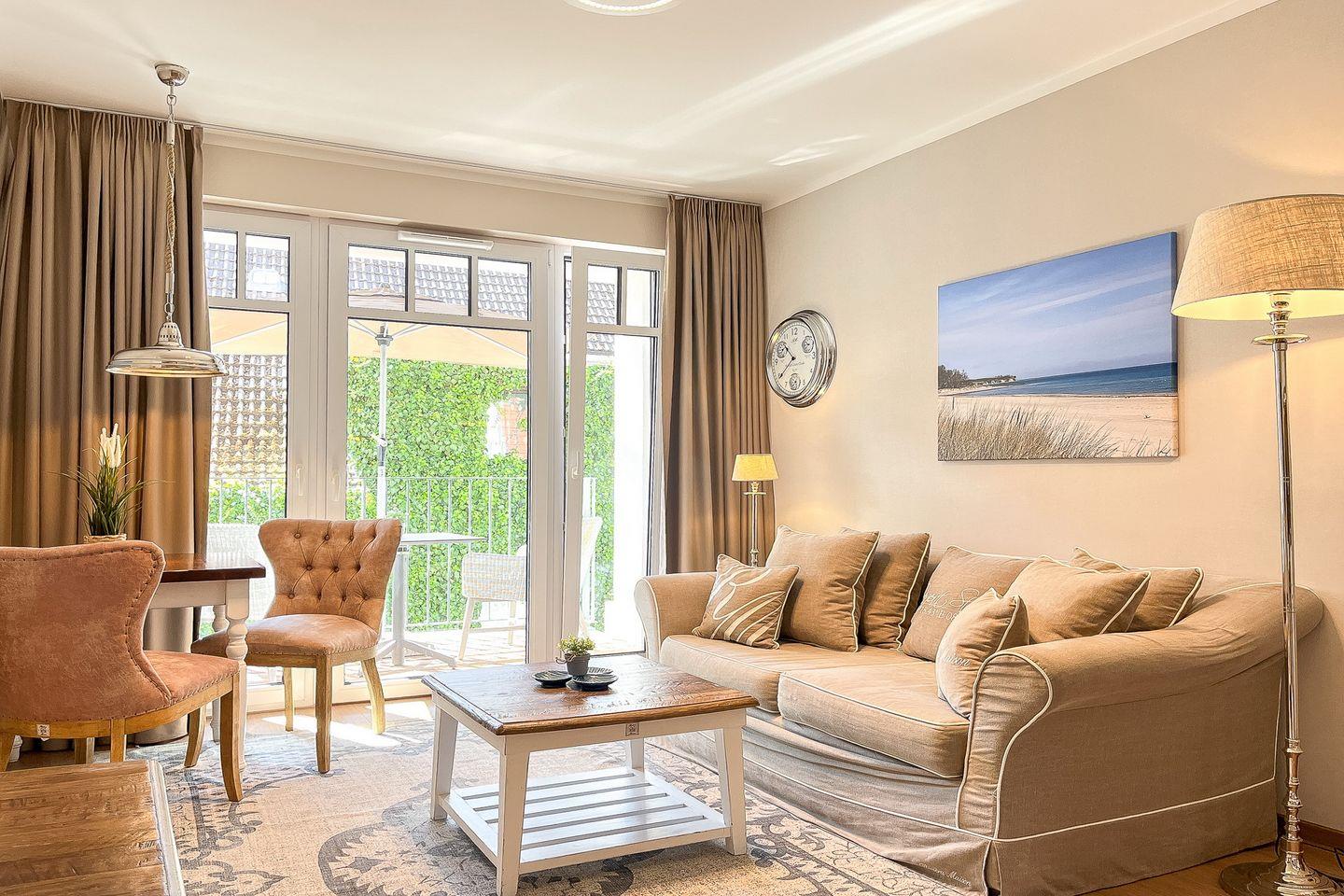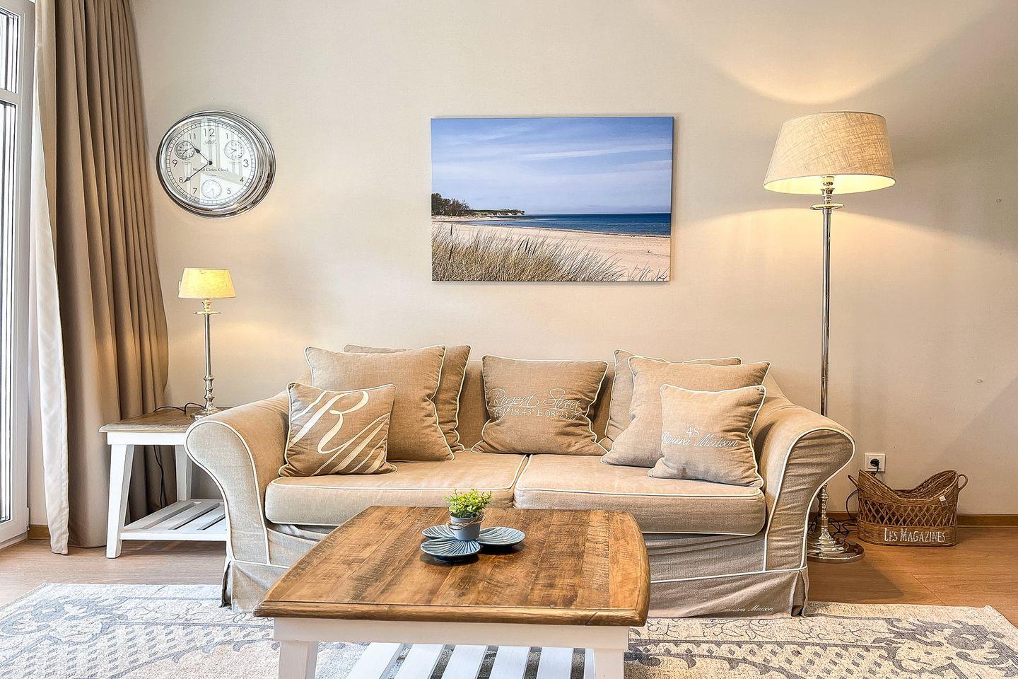 Stilvolle 2-Zimmer-Ferienwohnung im Baltischen Hof, nur 100 m vom Strand Boltenhagens entfernt, mit Balkon und Wellnessbereich.