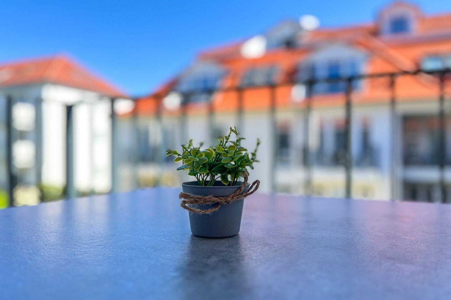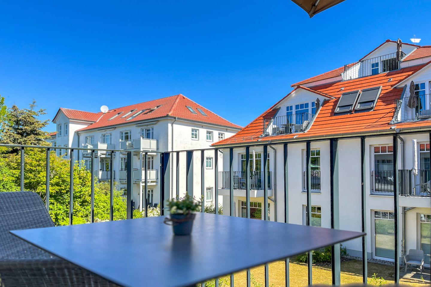 Moderne 2-Zimmer-Ferienwohnung im Baltischen Hof nahe Ostseestrand mit Balkon und Wellnessbereich.