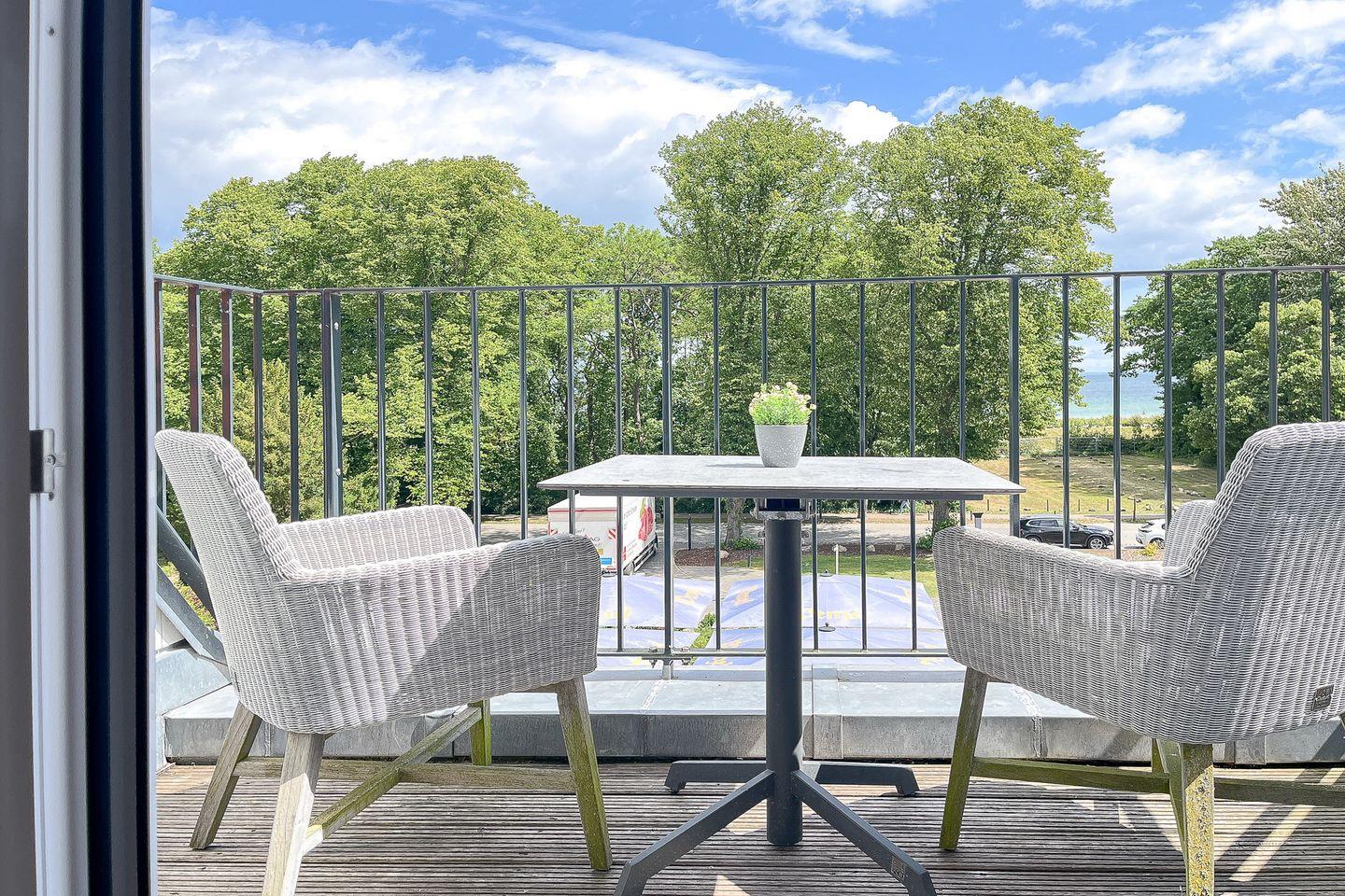 Ein besonderes Highlight ist der möblierte Balkon mit Meerblick – perfekt für ein Frühstück mit Aussicht oder einen entspannten Tagesausklang bei frischer Ostseeluft.