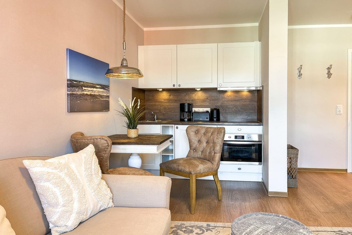 Die Ferienwohnung 61 im Baltischen Hof in Boltenhagen ist eine luxuriöse 2-Zimmer-Wohnung für bis zu zwei Personen mit eigener Sauna.