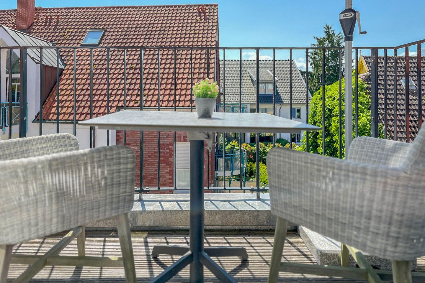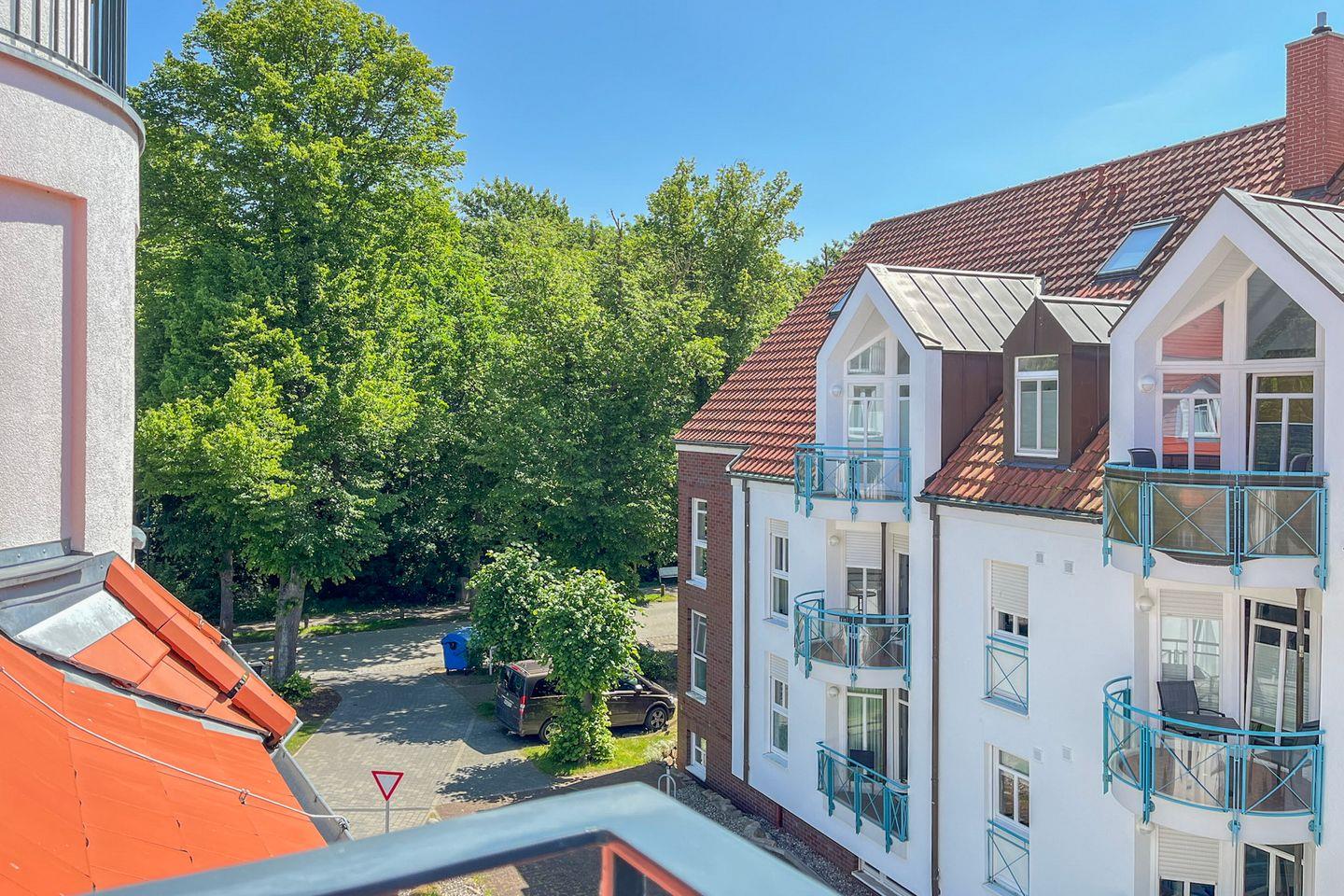 Ein echtes Highlight ist der möblierte Balkon mit Sonnenschirm – ideal, um die frische Ostseeluft zu genießen.