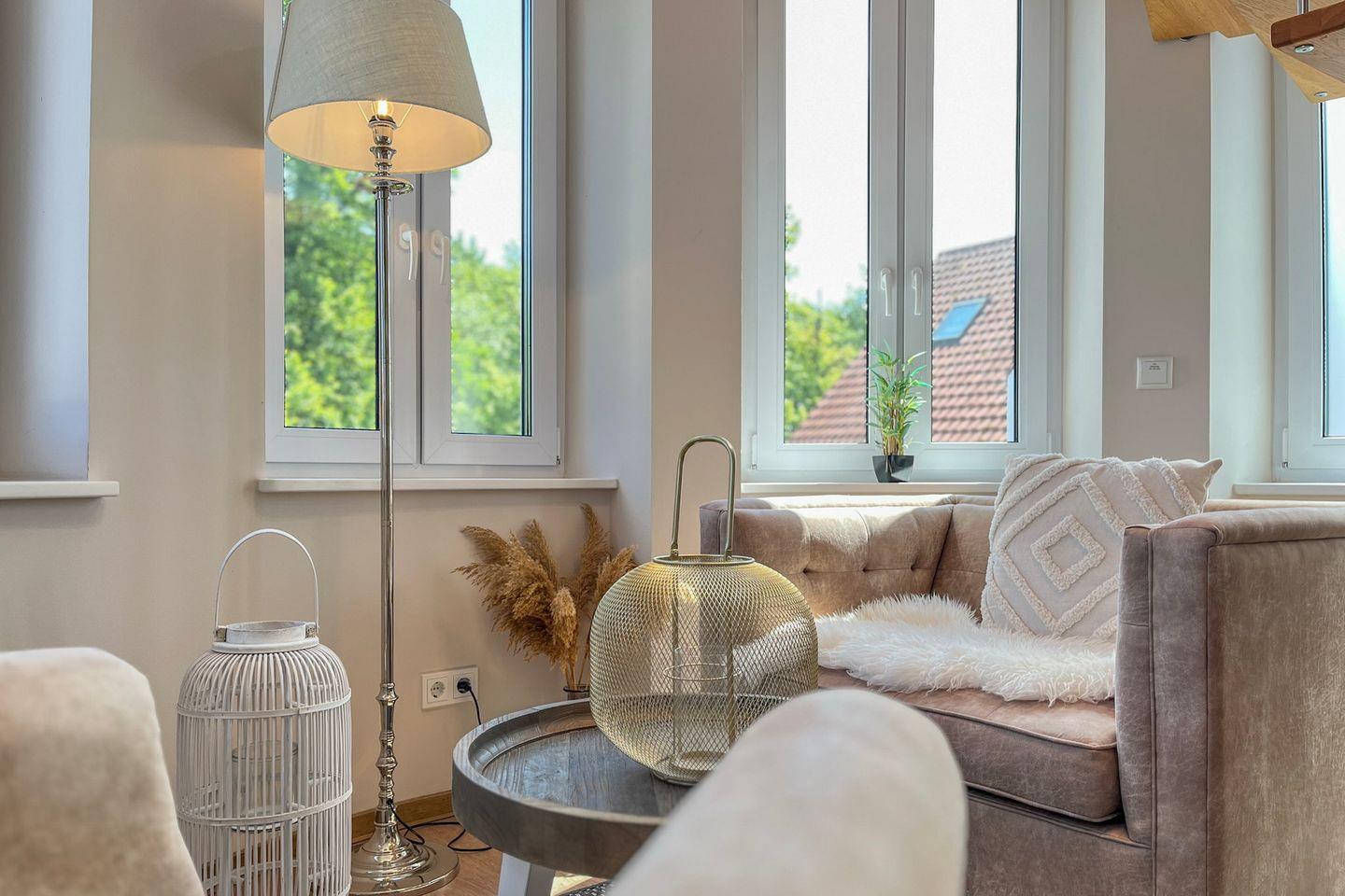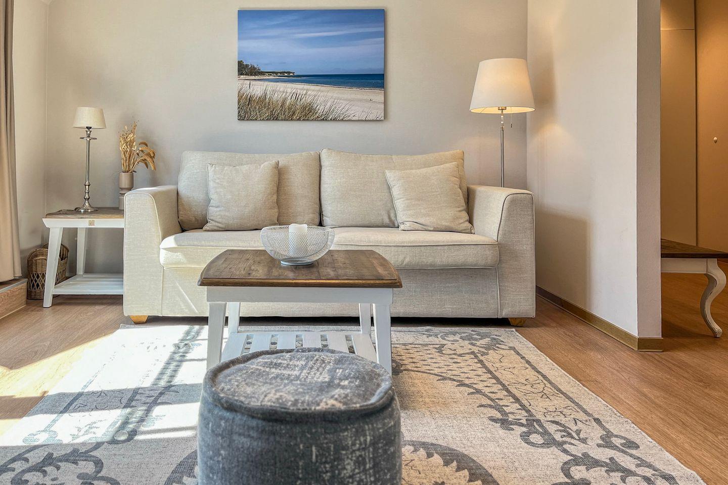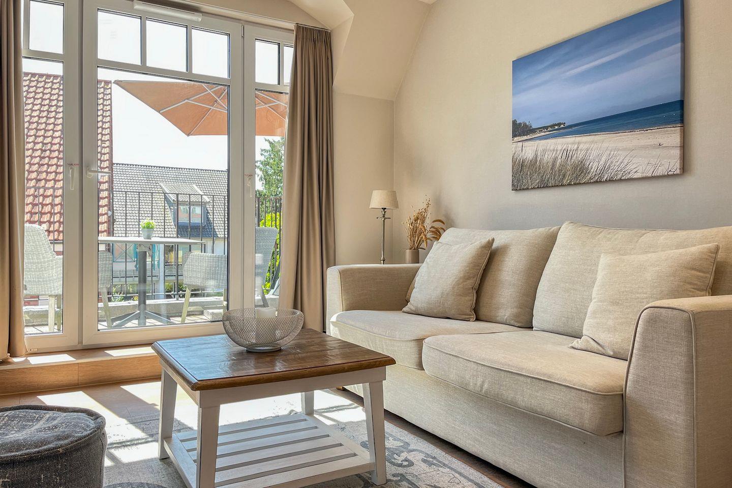 Elegante 2-Zimmer-Maisonette mit Meerblick, Balkon und Wellnessbereich in strandrahem Baltischer Hof, Boltenhagen.