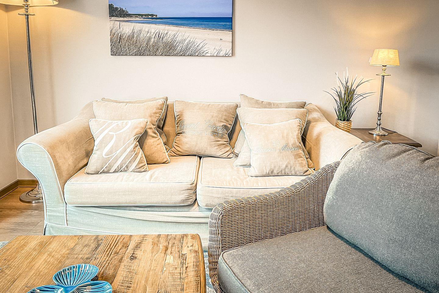 Die Ferienwohnung 55 im Baltischen Hof in Boltenhagen ist eine großzügige 3-Zimmer-Wohnung für bis zu vier Personen mit eigener Sauna.