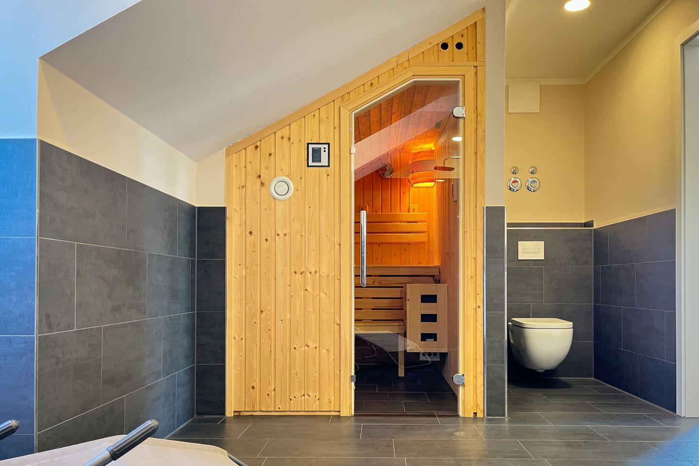 Ein besonderes Highlight dieser Wohnung ist die private Sauna zur Eigennutzung. Hier kannst Du ganz für Dich allein entspannen und den Tag wohlig-warm ausklingen lassen – ein Luxus, den nur wenige Apartments bieten.