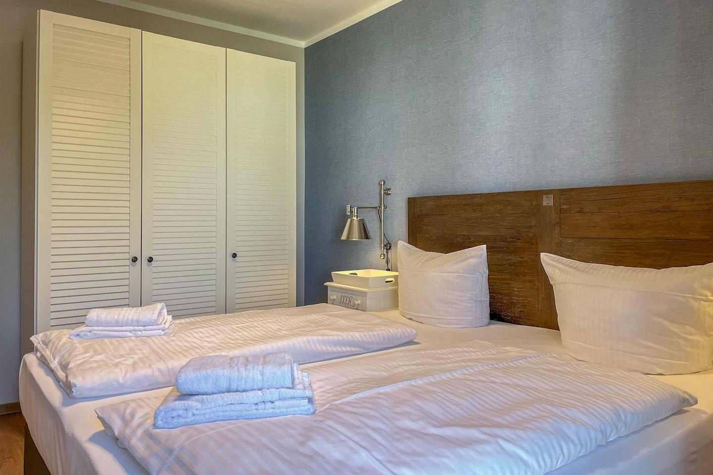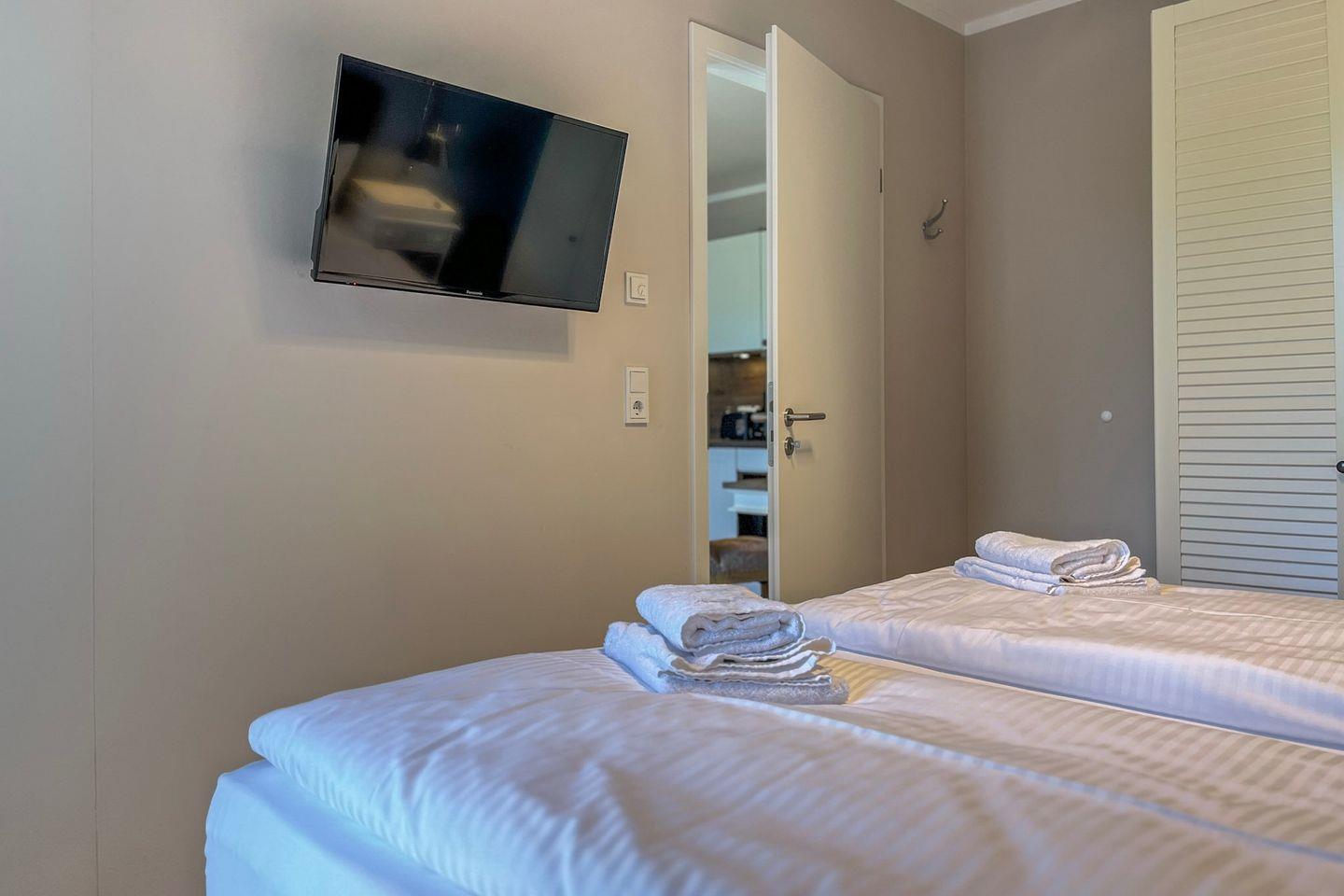 Das separate Schlafzimmer verfügt über ein bequemes Doppelbett (2x 90x200?cm) und einen zweiten Fernseher für entspannte Abendstunden im Bett.